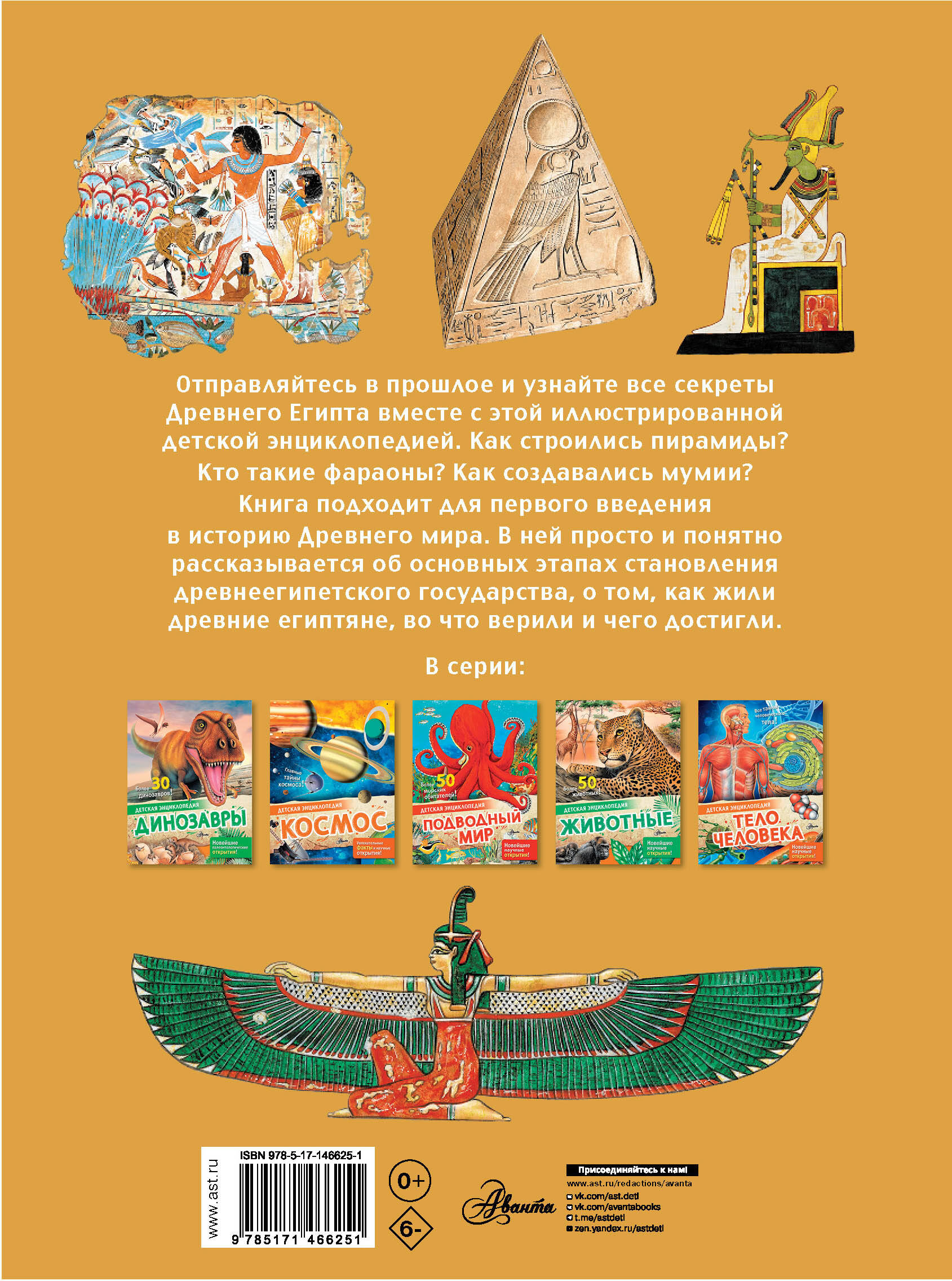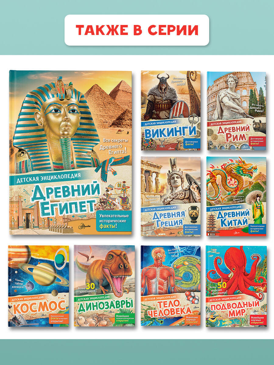 Отправляйтесь в прошлое и узнайте все секреты Древнего Египта вместе с книгой «Древний Египет» из серии «Детская энциклопедия». Книга подходит для первого введения в историю Древнего мира. В ней просто и понятно рассказывается об основных этапах становления древнеегипетского государства, о том, как жили древние египтяне, во что верили и чего достигли.| Издательство | АСТ |