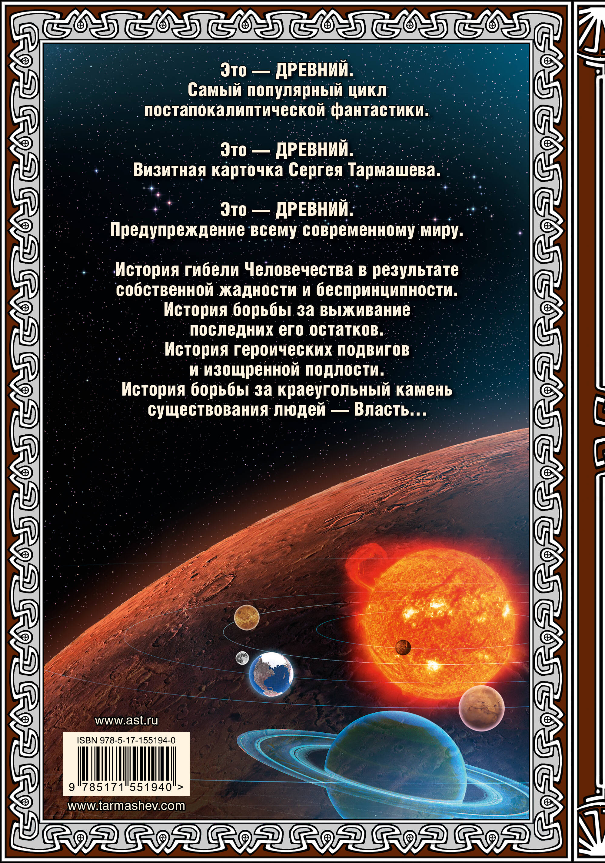 Это - ДРЕВНИЙ. Самый популярный цикл постапокалиптической фантастики. Это - ДРЕВНИЙ. Визитная карточка Сергея Тармашева. Это - ДРЕВНИЙ. Предупреждение всему современному миру. История гибели Человечества в результате собственной жадности и беспринципности. История борьбы за выживание последних его остатков. История героических подвигов и изощренной подлости. История борьбы за краеугольный камень существования людей - Власть… Три книги под одной обложкой!| Издательство | ИЗДАТЕЛЬСТВО "АСТ" |