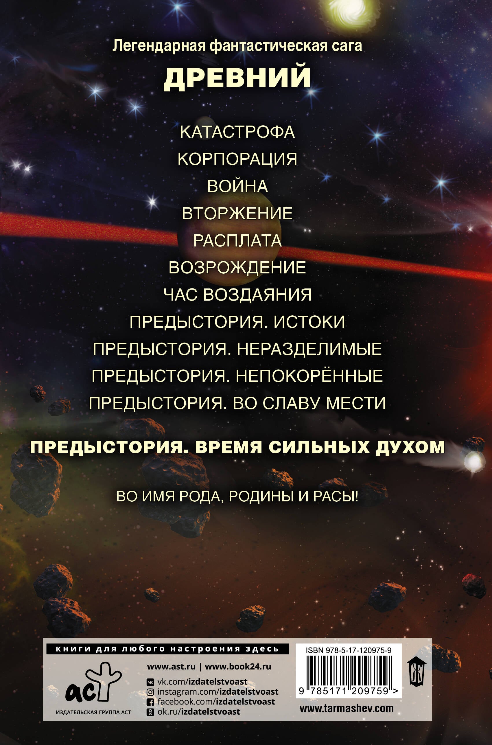 Цикл Сергея Тармашева «Древний» стал легендой отечественной фантастики и самой популярной из постапокалиптических саг. В подцикле «Предыстория» автор рассказывает о масштабных межгалактических событиях, предшествовавших грандиозной эпопее о Древнем. Новая книга «Время сильных духом» - уже пятая часть «Предыстории». Вторая Великая Асса закончилась пятьсот лет назад. Уже отстроены заново разрушенные грады и усадьбы, очищены от отравляющих веществ планеты, снова выросли выжженные с корнем леса, а павшие в боях давно отмщены. Для воинской расы давно настали мирные дни, но у эскадры прикрытия системы звезды Ярило хлопот хватает каждый день. Мало того что эскадра вынуждена держать в строжайшей тайне существование целой солнечной системы, населённой миллиардом жизнерадостных, любознательных и излишне деятельных гражданских, так ещё эти гражданские постоянно лезут на рожон, из-за Рубежа проникают беженцы низкоэнергетических рас, в соседней галактике оружие Эмиссара Тёмных выжигает целые солнечные системы, а Гармоничная красавица исчезает во время рутинного полёта...| Издательство | ИЗДАТЕЛЬСТВО "АСТ" |