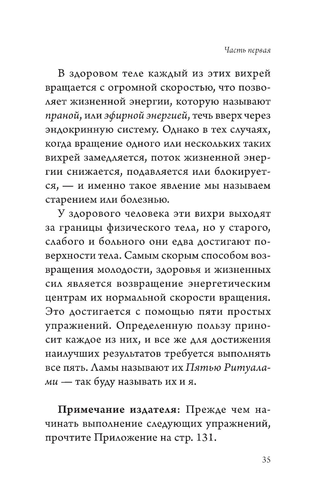 У вас в руках новая версия знаменитого "Источника молодости" Питера Кэлдера - пяти тибетских ритуалов, вернувших молодость и здоровье миллионам людей во всем мире. К этой великолепной маленькой книге добавились две новые главы - недавно найденная в архивах Кэлдера пятая глава с совершенно новой информацией о Шестом Ритуале и еще одна - многочисленные свидетельства омоложения и исцеления от самых разных болезней с помощью простых и волшебных тибетских упражнений.| Издательство | София |