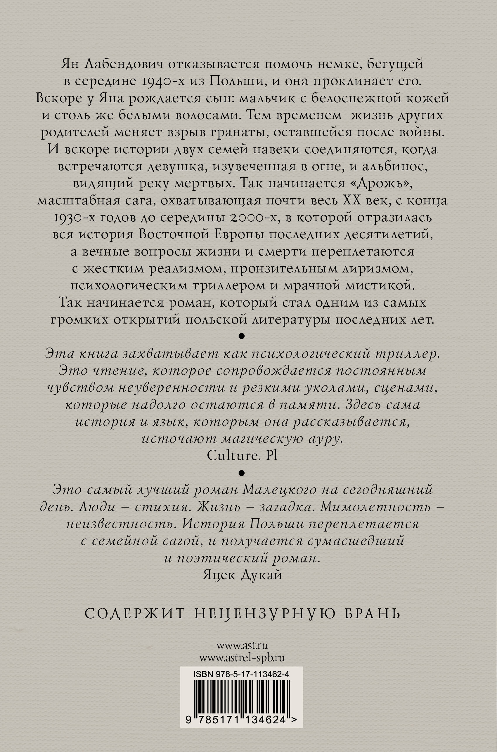 Для всех поклонников культовых бестселлеров «Иерусалим» и «Бесконечная шутка». Детектив, исторический роман, пронзительная любовная история и драма о проклятии, преследующем две семьи из-за случая во время войны. Якуб Малецкий - один из ведущих польских прозаиков современности, блестящий стилист, работающий на стыке жанров.| Издательство | Издательство "АСТ" |