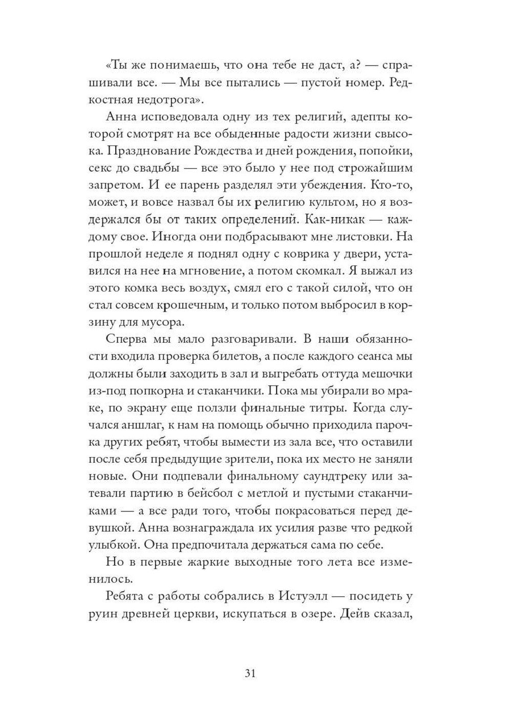 «Другая жизнь» - это история Ника и Анны. Ему двадцать два, ей девятнадцать. Они подрабатывают летом в кинотеатре, пытаются сохранить свои отношения в секрете от коллег и друзей, говорят о поэзии и музыке и делятся мечтами о будущем. Анна выросла в семье, состоящей в религиозной общине, строгие правила которой не позволяют ей встречаться с «посторонним». Когда приходится делать выбор между любовью и семьей, Анна расстается с Ником. Он растерян и не пытается ее удержать… Спустя почти два десятилетия пути Ника и Анны снова пересекаются, и они осознают, что их сердца по-прежнему стремятся друг к другу. Но прошедшие годы воздвигли множество преград на пути к их счастью. Смогут ли Ник и Анна найти в себе силы преодолеть их или оставят в прошлом то, что было между ними, и пойдут каждый своим путем?| Издательство | Синдбад |