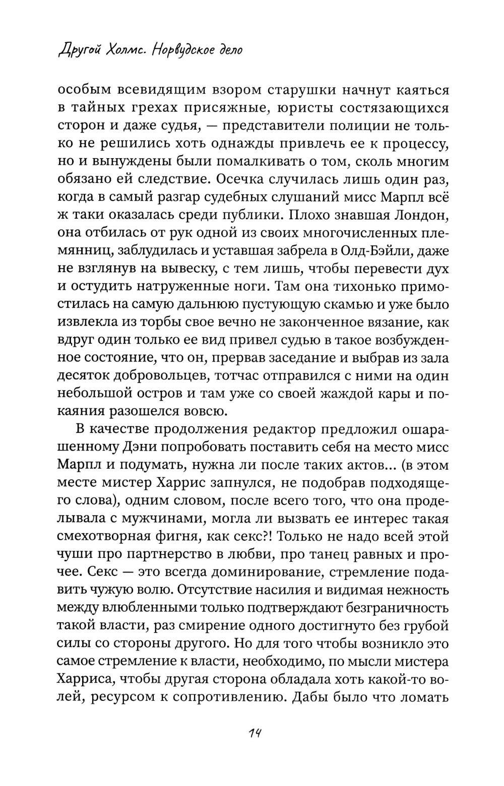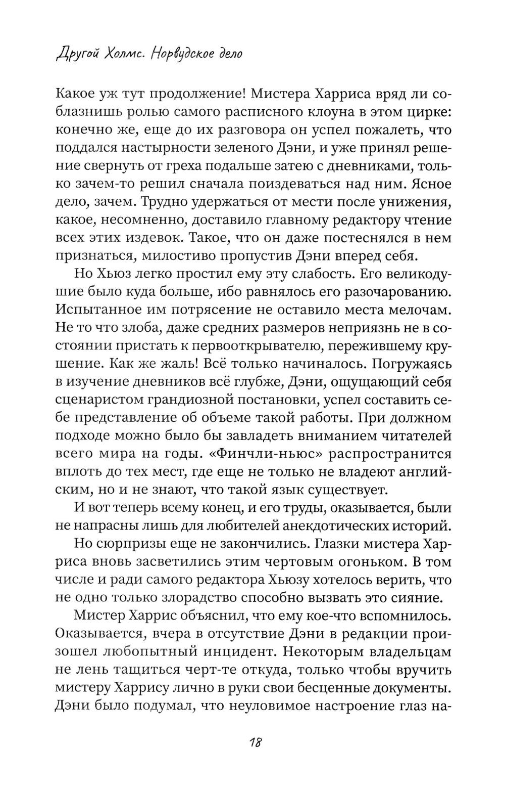 Предлагаемый труд представляет собой альтернативный, порой ироничный взгляд на события, известные читателям по произведениям Артура Конан Дойла. 1892 год. Напряженные отношения Шерлока Холмса с лондонской полицией еще более обострились после появления первых рассказов Конан Дойла (о чем повествует книга «Другой Холмс, или Великий сыщик глазами очевидцев. Начало»). В то время как Холмс, доктор Уотсон и инспектор Лестрейд стремятся разгадать тайну личности писателя и его цели, возникает новая загадка. Убийство и похищение сокровищ в Норвуде. Повествование построено на классических произведениях о Холмсе: повести «Знак четырех» и рассказе «Желтое лицо». Однако вводным данным, представляющим завязку этих произведений, дается совершенно иная трактовка, вследствие чего сюжетная линия меняется самым неожиданным образом...