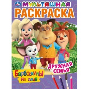 Мультяшная раскраска «Барбоскины на даче. Дружная семья» обязательно понравится малышу: