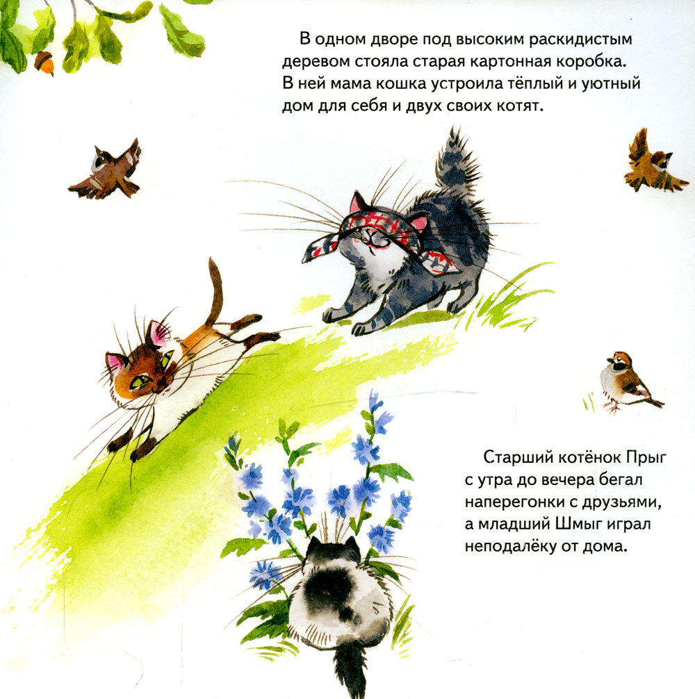 А ещё в книге вас ждёт добрая история про братишек Прыга и Шмыга. Что делать, если старший и младший ребёнок никак не могут найти общий язык? Как поступить родителям, чтобы ссор в семье стало меньше? Милые котята и их мама, кажется, могут подсказать ответ.