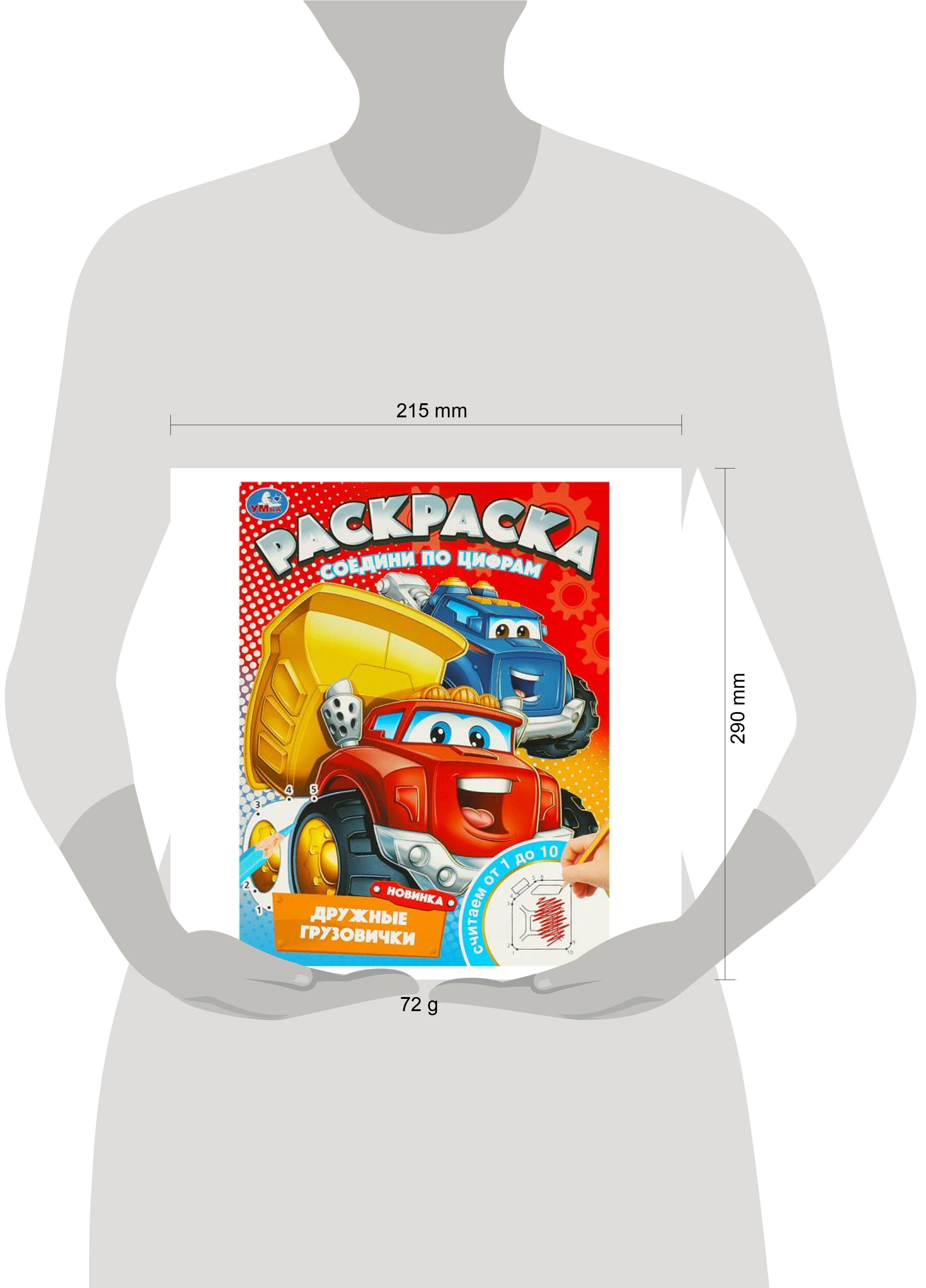 Аннотация: Дружные грузовички. Раскраска. Соедини по цифрам. 214х290 мм. Скрепка. 16 стр. Умка в кор.50шт