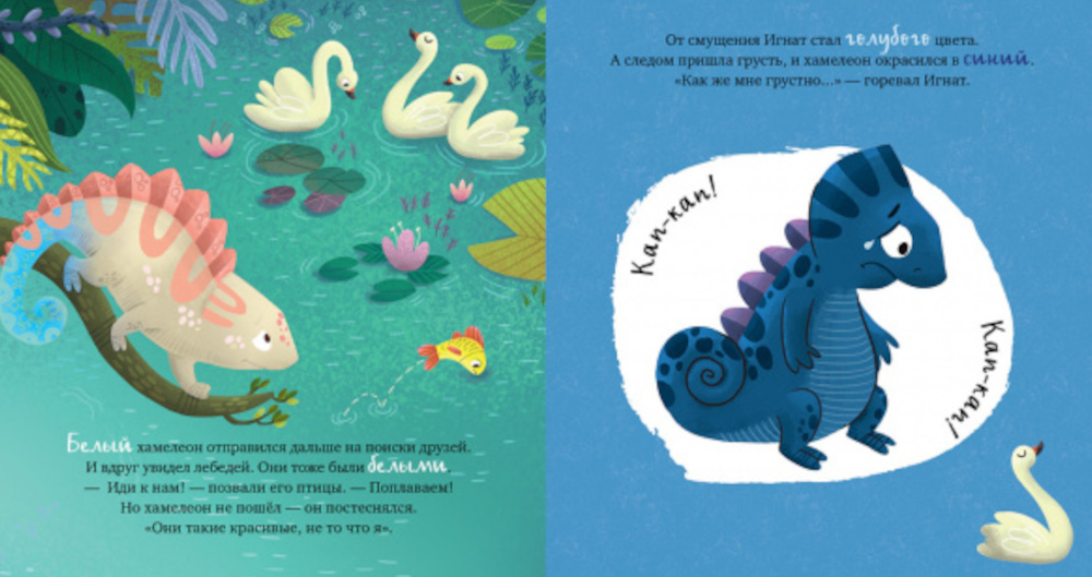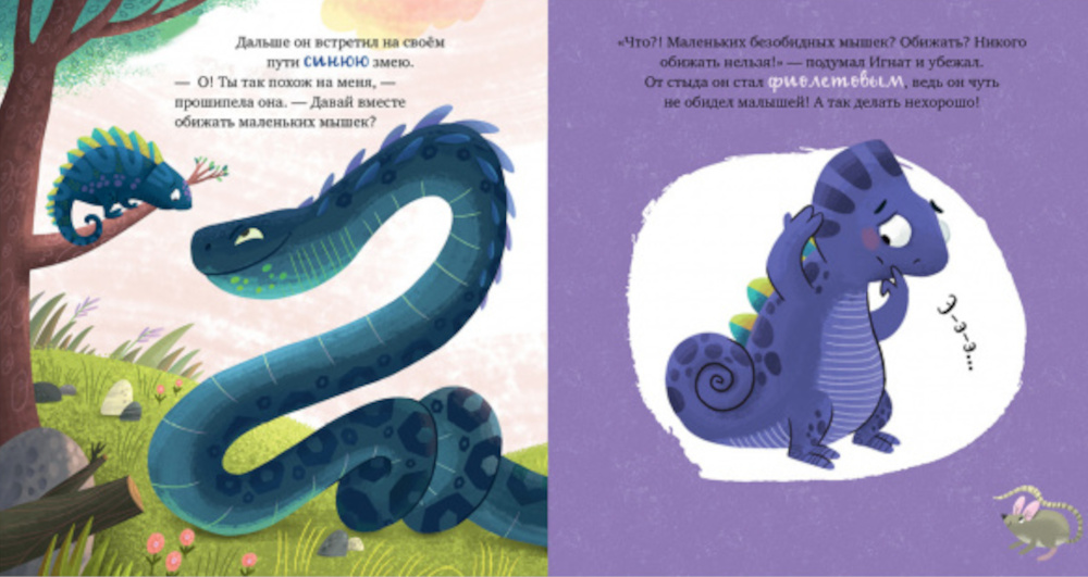 Хамелеон Игнат - очаровательный малыш, который меняет свой цвет в зависимости от настроения. Он ни на кого не похож, и другие зверята часто его не понимают. Вместе с маленьким читателем Игнат будет учиться справляться со своими эмоциями и находить друзей.| Издательство | Клевер-Медиа-Групп |