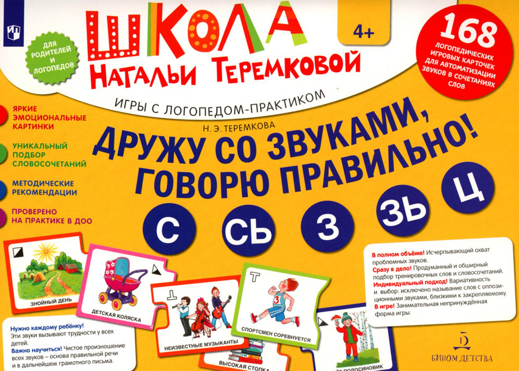 В этом поможет комплект разрезных карточек «Школа Натальи Теремковой» - уникальный материал для игровых занятий с ребенком на закрепление всех групп звуков. Вам не нужно думать, какие тетради и пособия подобрать, чтобы правильно организовать обучение малыша. Каждый альбом серии «Дружу со звуками, говорю правильно», который входит в «Школу» - лучшее решение для закрепления в короткий срок звуков, поставленных логопедом. Благодаря комплекту вы также активируете у ребенка слуховое, зрительное восприятие, память и связную речь.