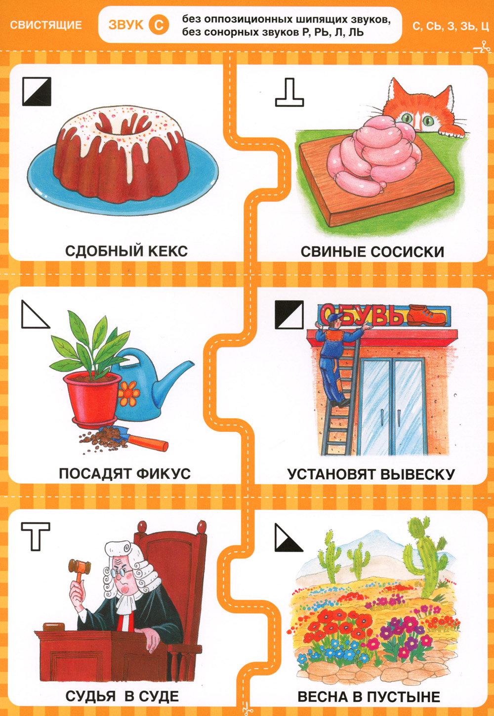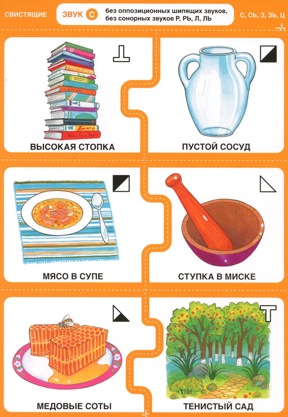 Правильно подобранные логопедом-практиком предметные картинки позволяют закрепить произношение сначала в слогах, затем в словах и в сочетаниях слов, предложениях и связной речи. Звуки закрепляются во всех позициях - в начале, в середине и в конце слов.