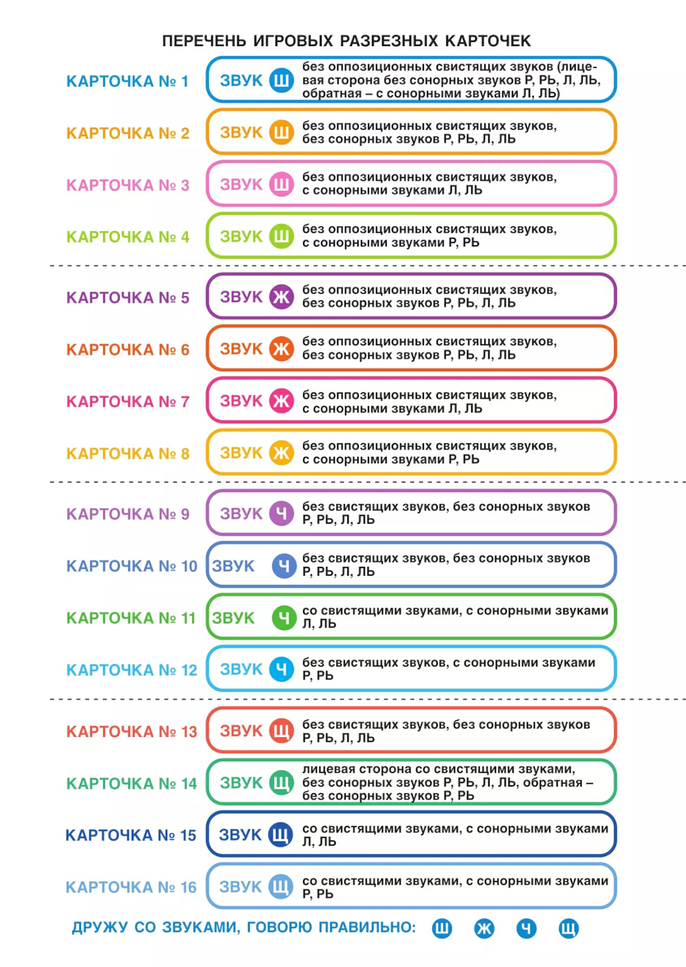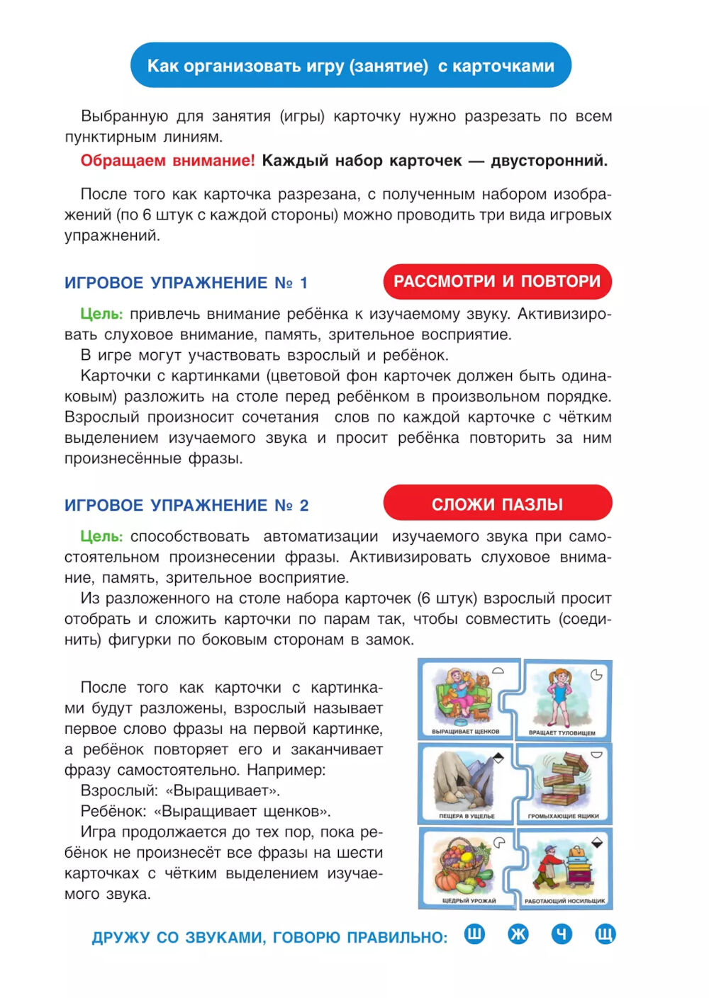 Дружу со звуками говорю правильно! Ш Ж Щ Ч. Комплект логопедических игровых карточек для автоматизации звуков в сочетаниях слов (192 карточки)