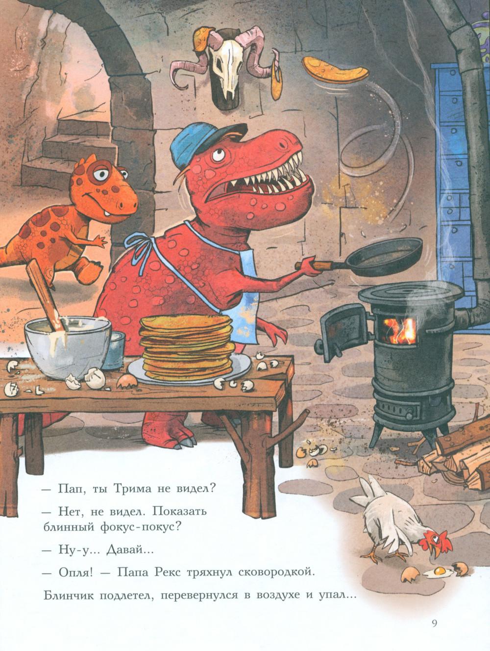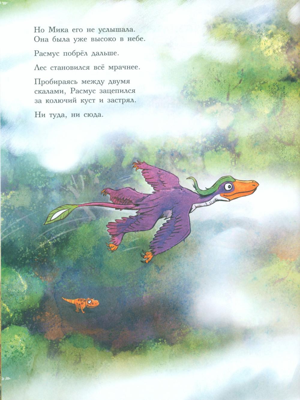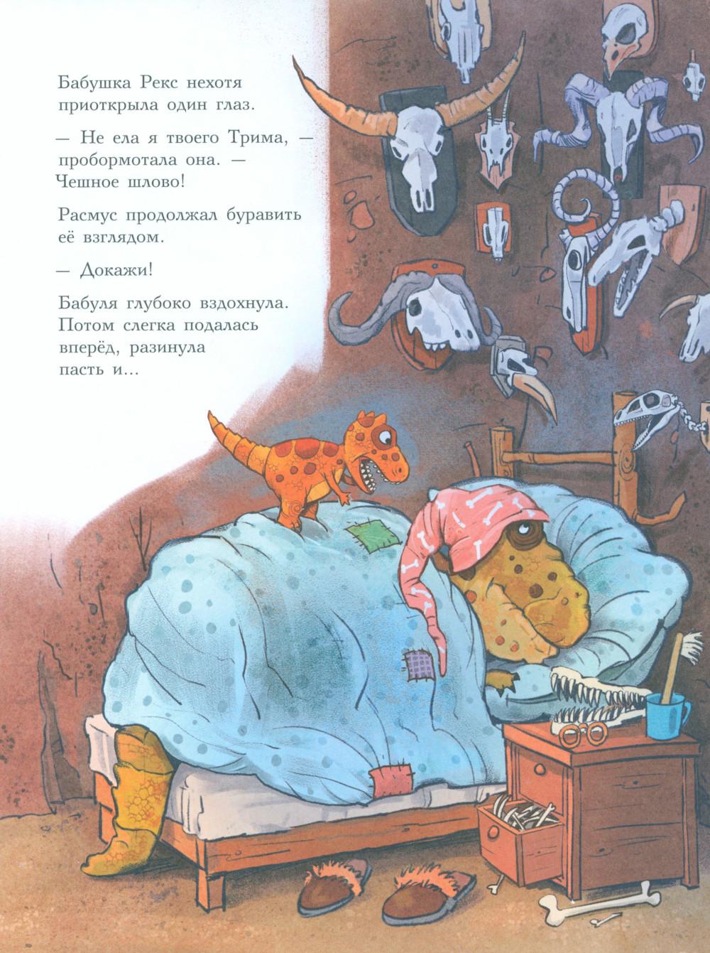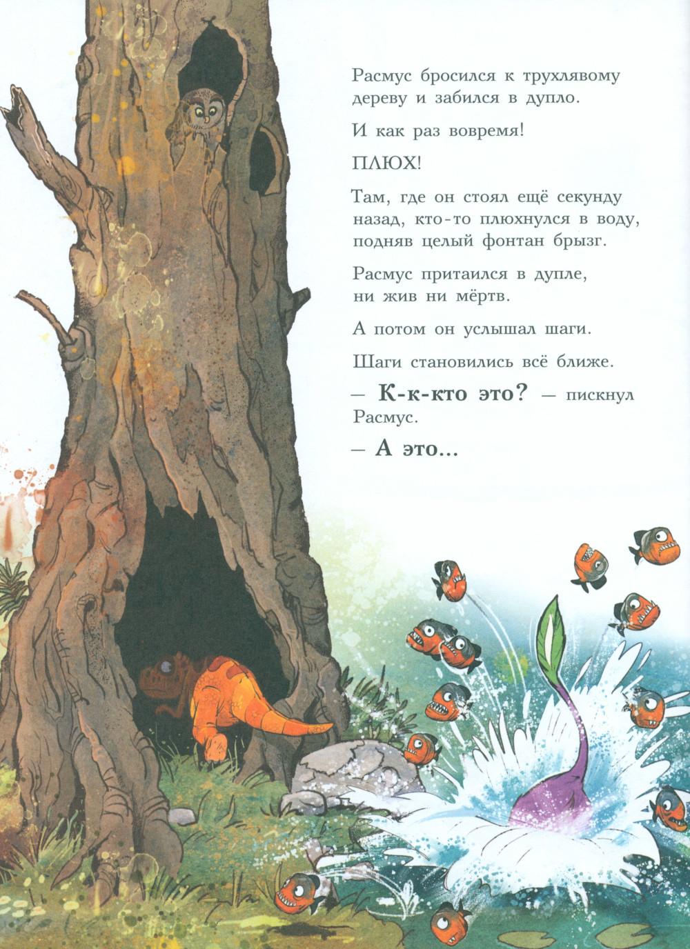 Каждая книга серии «Друзья-динозаврики» рассказывает об одном дне из жизни тираннозаврика Расмуса Рекса и его лучшего друга Трима Троодона. В то утро Расмус открыл глаза и понял, что проспал. В сердце закралась тревога: обычно его будил Трим, а сегодня Трим не пришел. Не случилось ли какой-то беды? Расмус отправился искать друга в болотный лес, хотя идти туда в одиночку было ужасно страшно. На секретной площадке он наконец увидел Трима, но тот был не один, а с незнакомым летающим динозавром. Трим и его новый приятель качались на качелях и хохотали, а на Расмуса не обращали никакого внимания. Расмус постоял-постоял и побрел домой. Таким потерянным и ненужным он себя еще никогда не чувствовал. Разве настоящие друзья так поступают?.. Вскоре Трим догнал Расмуса, извинился перед ним и недоразумение тут же забылось. Так дружба динозавриков прошла испытание на прочность. Серию книг о приключениях друзей-динозавриков сочинили и нарисовали писатель Ларс Мэле и художник Ларс Рудебьер. Они создали целую страну Динозаврию, где на каждой странице ребенка ждет что-то смешное и неожиданное. В книге много диалогов, поэтому она отлично подойдет для чтения вслух и разыгрывания по ролям с детьми от 4-х лет. Кроме увлекательного сюжета и симпатичных героев в книге есть небольшая познавательная часть, где рассказывается о том, кто такие динозавры, когда они жили на Земле и почему исчезли. А еще приводятся интересные факты о настоящих динозаврах - прототипах героев этой книги.| Издательство | Мелик-Пашаев |