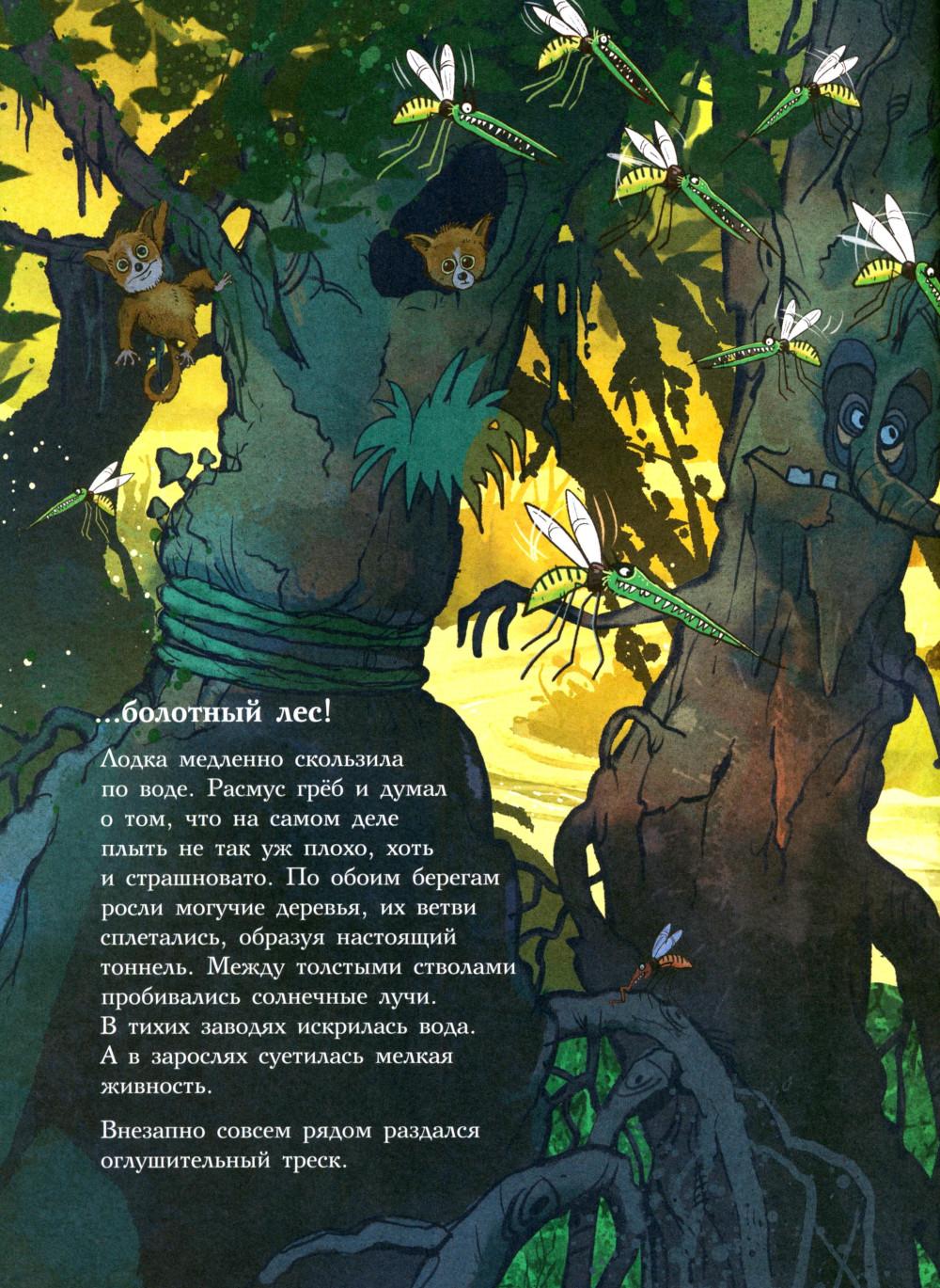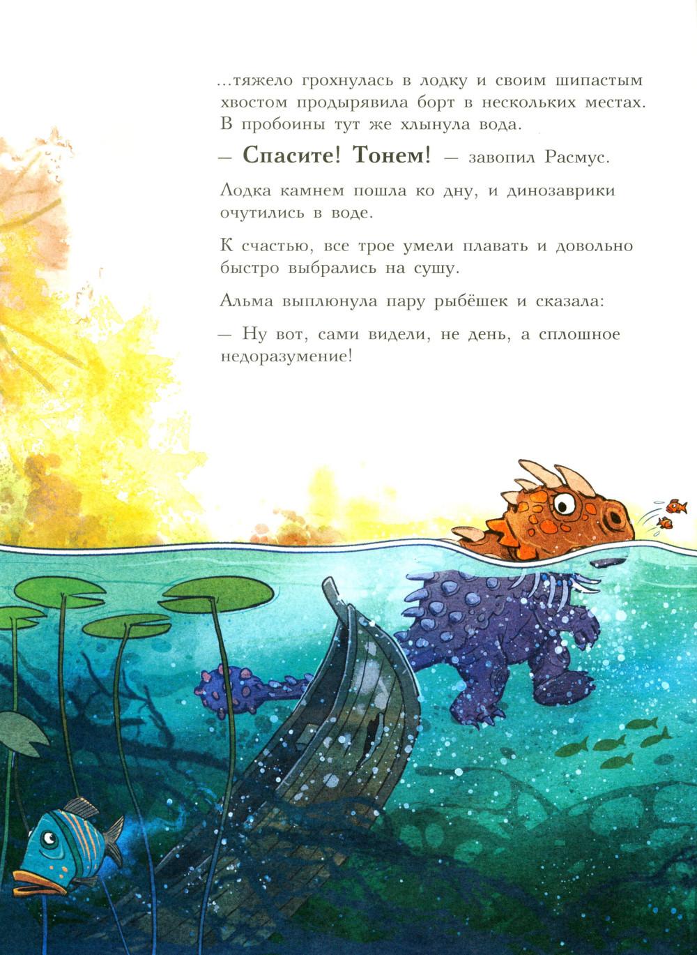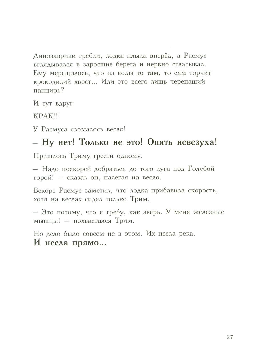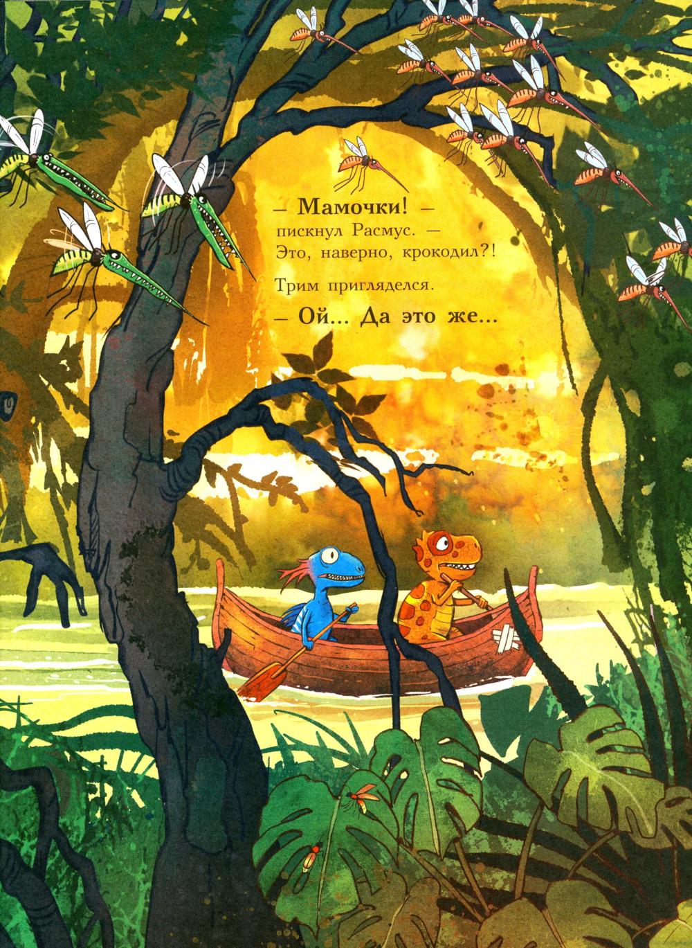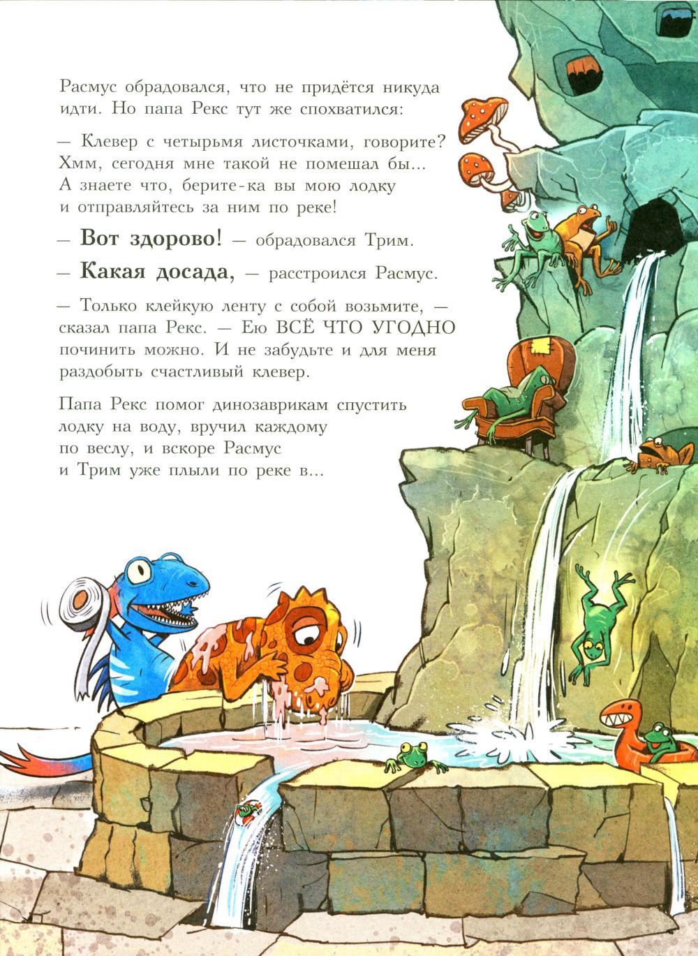 Каждая книга серии «Друзья-динозаврики» рассказывает об одном дне из жизни тираннозаврика Расмуса Рекса и его лучшего друга Трима Троодона. И вот как раз этот день у Расмуса не задался с утра. Только он встал с кровати, как поскользнулся, упал и врезался носом в комод. А всего через пару минут под ним проломилась половица, и он рухнул в подвал. Почему? Да потому, что сегодня была пятница, 13-е - день невезения! Хорошо, что Трим знал способ, как избавиться от всех несчастий. Надо найти клевер-четырехлистник, закрыть глаза, загадать желание, бросить клевер через левое плечо, и - опля! - желание сбудется! Правда, растет этот ключик к удаче в самой чаще болотного леса, на лугу под Голубой горой. Друзья берут у папы Рекса лодку и отправляются за клевером по реке, даже не представляя, сколько опасностей их ждет впереди… Серию книг о приключениях друзей-динозавриков сочинили и нарисовали писатель Ларс Мэле и художник Ларс Рудебьер. Вместе они создали целую страну Динозаврию, где на каждой странице ребенка ждет что-то смешное и неожиданное. В книге много диалогов, поэтому она отлично подойдет для чтения вслух и разыгрывания по ролям с детьми от 4-х лет. Кроме увлекательного сюжета и симпатичных героев в книге есть небольшая познавательная часть, где рассказывается о том, кто такие динозавры, когда они жили на Земле и почему исчезли. А еще приводятся интересные факты о крокодилах, которые обитали на Земле в одно время с динозаврами.| Издательство | Мелик-Пашаев |