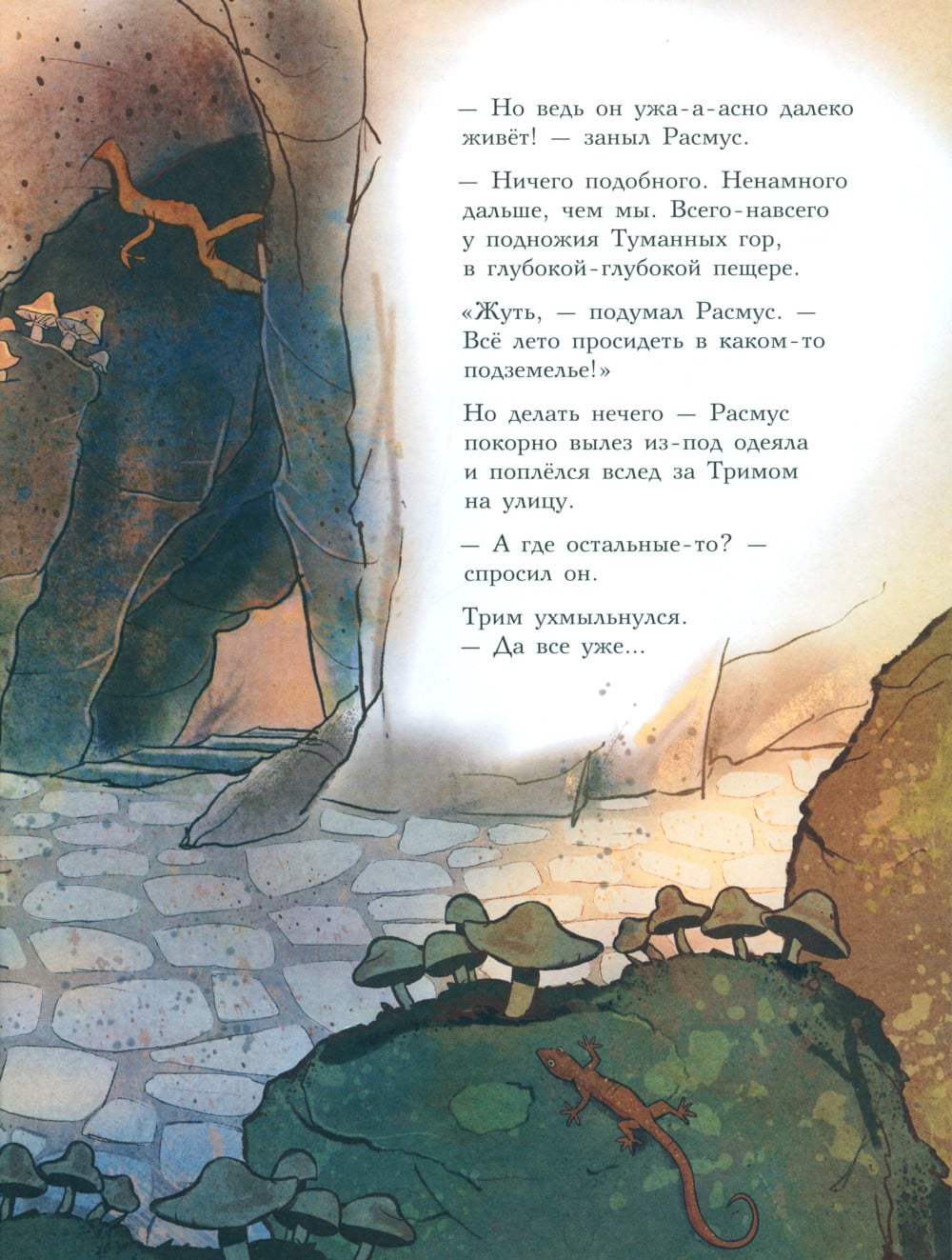 Ни свет ни заря Расмуса Рекса поднял с постели его лучший друг Трим Троодон. Расмус совсем забыл, что семейство Рексов и семейство Троодонов договорились отправиться сегодня к дедушке Трима! Расмусу страшно не хотелось тащиться в такую даль, к подножию Туманных гор. И для чего? Чтобы всё лето просидеть в какой-то тёмной пещере! Но уговор есть уговор, и он пошёл вместе со всеми. Когда же вся компания добралась наконец до места, вместо дедушки они обнаружили письмо. В послании говорилось, что найти деда Трима, а заодно узнать его тайну можно, только пройдя квест. О приключениях Расмуса и Трима читайте в других книгах серии «Друзья-динозаврики»: Яйцо«, «Заплыв», «Поход», «Зимняя рыбалка», «Гигантский осьминог», «Испытание», «Клевер удачи», «Спасатели».| Издательство | Мелик-Пашаев |