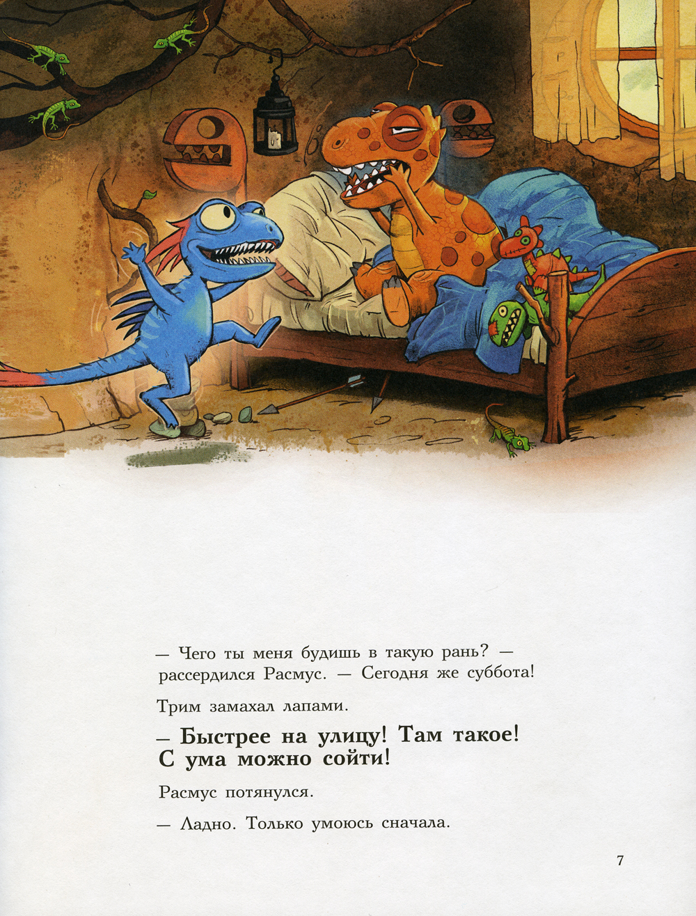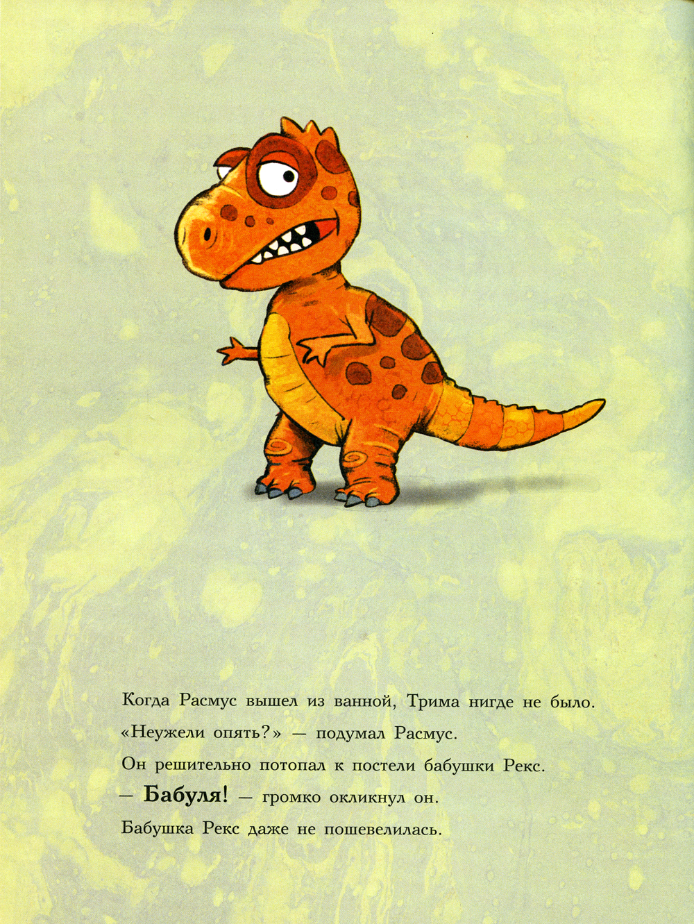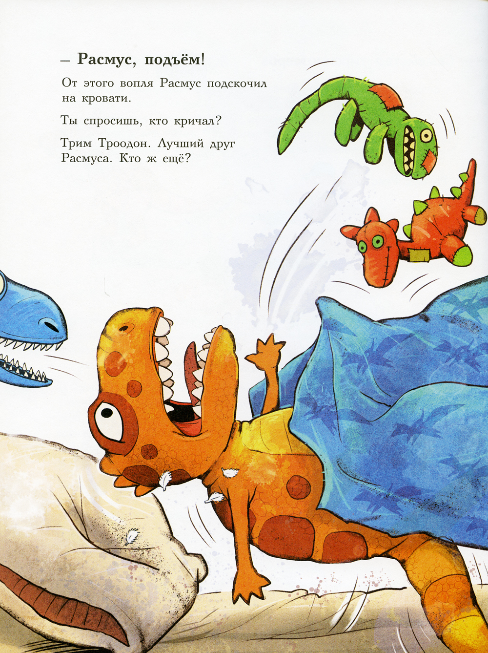 Ранним субботним утром Трим разбудил Расмуса и потащил на улицу. А там впервые за тысячу лет выпал снег! Такого никто из динозавриков ещё никогда не видел. Папа Рекс предложил устроить соревнования по зимней рыбалке, и весёлая компания отправилась на Большое озеро. Оказалось, что ловить рыбу подо льдом совсем непросто, и на крючок постоянно попадалось что-то не то. А потом и вовсе попался кронозавр - самое кровожадное подводное чудище на свете! И неизвестно, чем бы это закончилось, если бы не бабушка Рекс, которая бросилась на защиту любимого внука и обратила в бегство грозного кронозавра. О приключениях Расмуса и Трима читайте в других книгах серии «Друзья-динозаврики»: «Яйцо», «Заплыв», «Поход», «Испытание», «Гигантский осьминог».| Издательство | Мелик-Пашаев |
