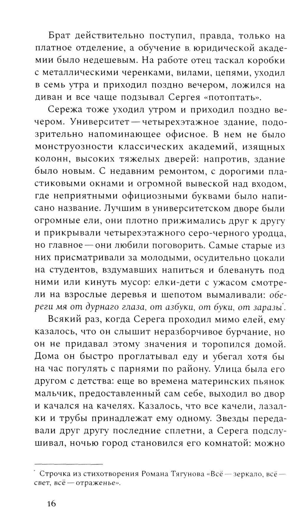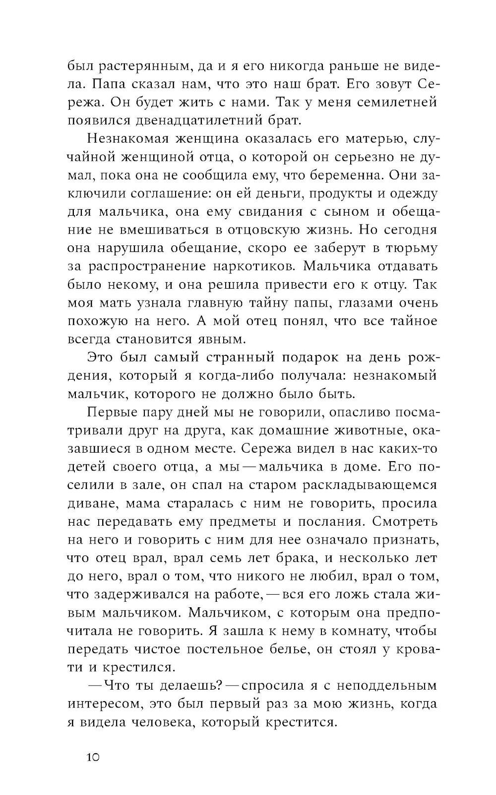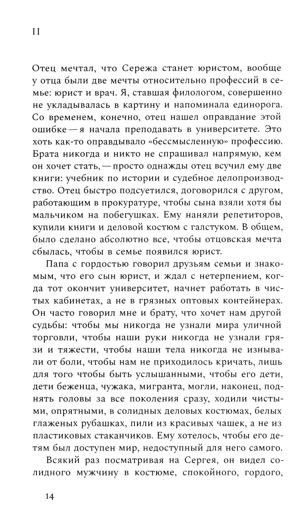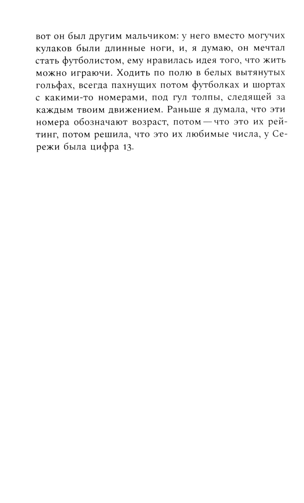 «Этот текст похож на российскую дорогу: он неровный, с кочками и ямами, с ремонтом посреди трассы. У меня нет навигатора по жизни Сереги, поэтому все, что мне остается, - ехать на ощупь». В книге Егана Джаббарова предпринимает попытку реконструировать короткую биографию сводного брата Сергея, родившегося от внебрачной связи ее отца. Следуя за братом по маршруту, который привел его к ранней и трагической смерти, автор обнаруживает, что сквозь историю Сергея проступает история страны конца 1990 х - начала 2000 х: межэтническое напряжение, нищета, борьба за выживание, эпидемия зависимостей и кризис идентичности. В то же время обращение к судьбе погибшего брата становится актом любви и памяти, единственным способом связать дискретные события его и своей жизни и преодолеть разрыв - культурный, религиозный, бытийный. Егана Джаббарова - писательница, поэтесса, эссеистка, автор книг «Руки женщин моей семьи были не для письма», «Красная кнопка тревоги», «Босфор» и «Поза Ромберга».