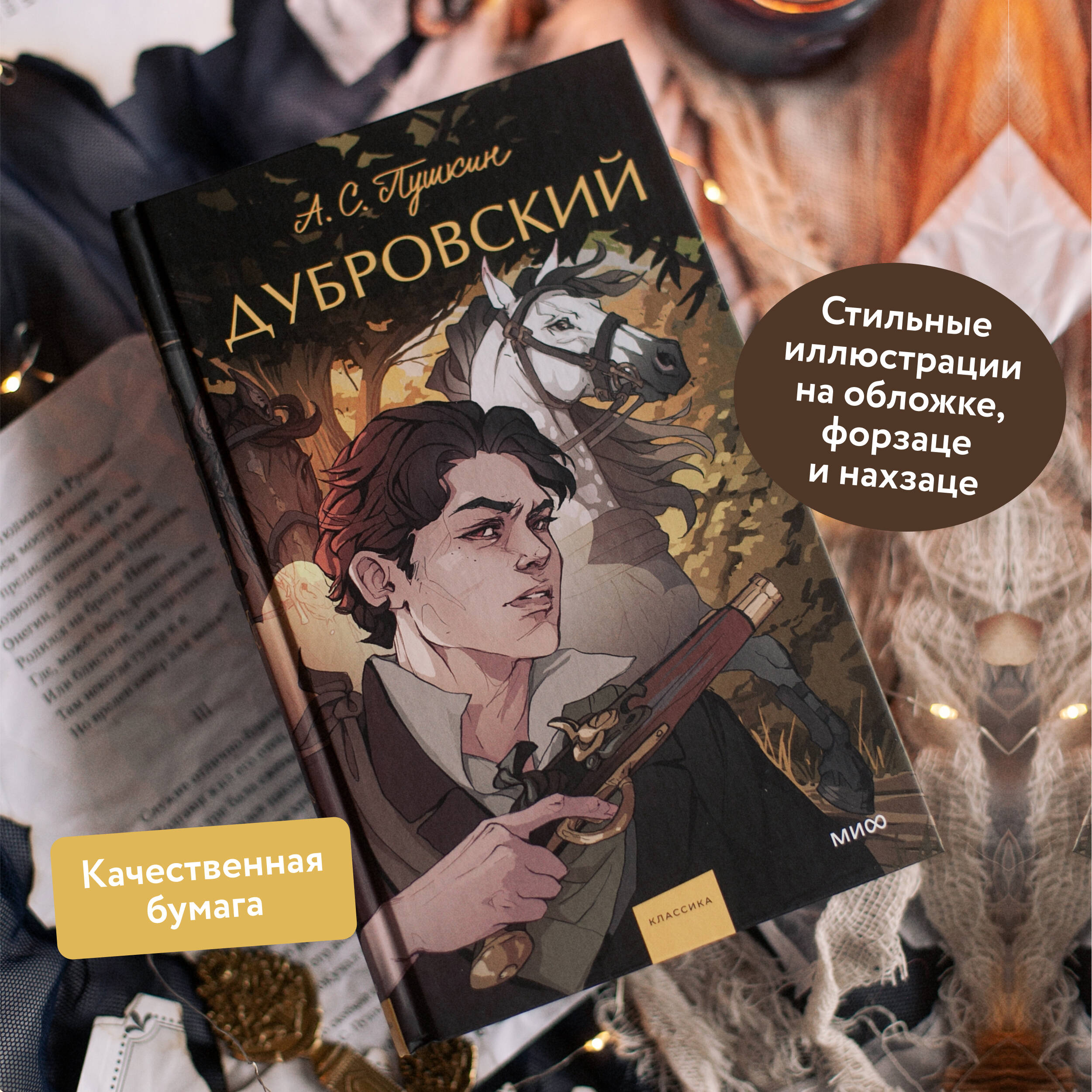 История любви Владимира Дубровского и Марии Троекуровой - потомков двух враждующих помещичьих семейств Иллюстрации на обложке, форзаце и нахзаце от ALES В сборник также входят «Египетские ночи» и «Роман в письмах»| Издательство | МАНН, ИВАНОВ И ФЕРБЕР ООО |