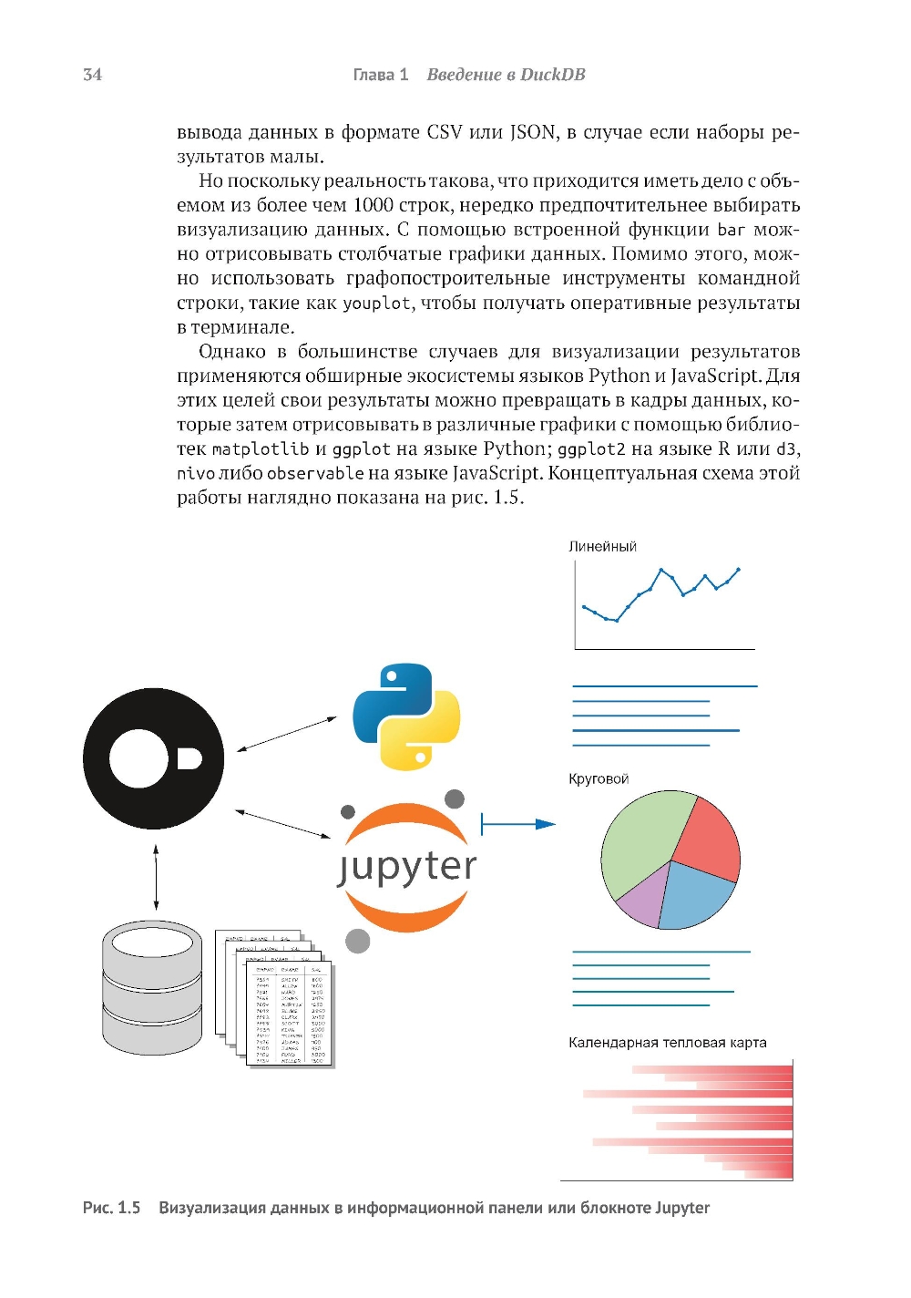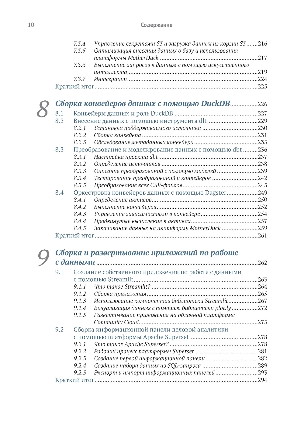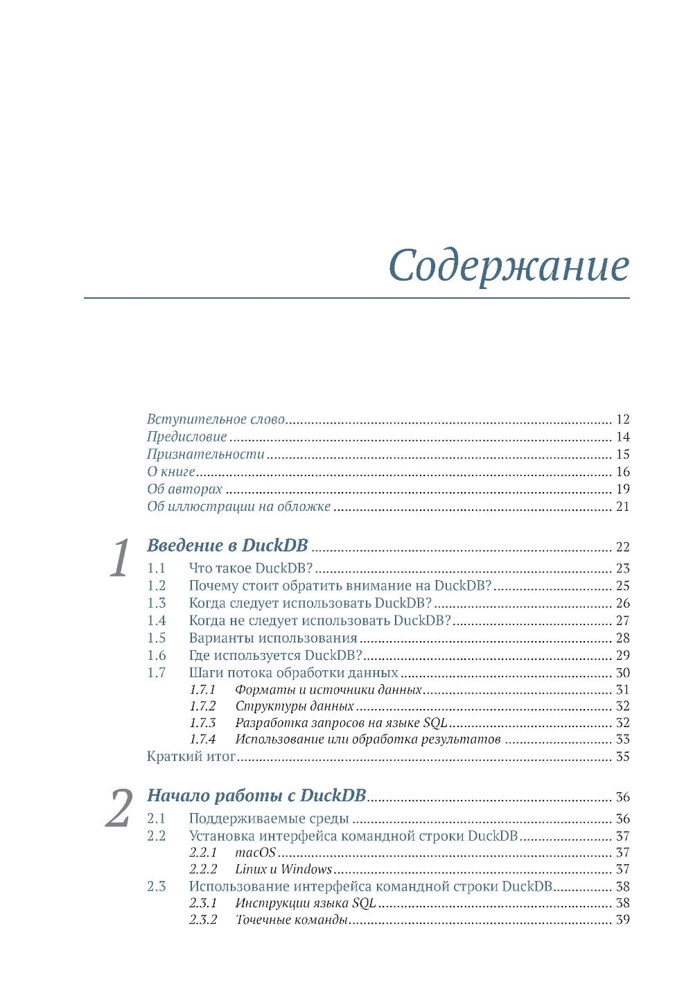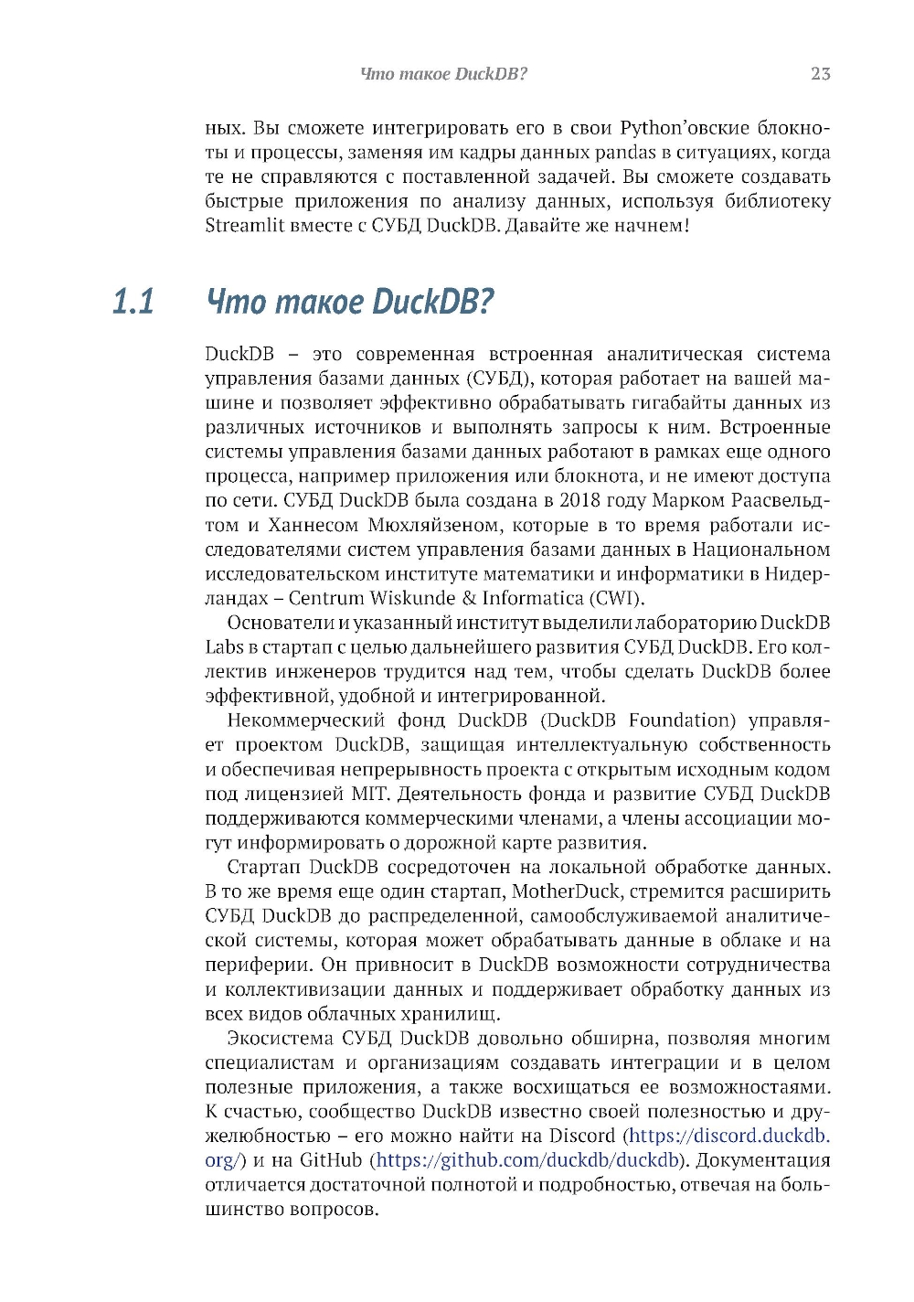 Книга рассказывает о приемах эффективной работы со столбцово-ориентированной системой управления базами данных DuckDB, которая легко встраивается в аналитические приложения, работает на ноутбуке и оперирует данными практически из любого источника, включая JSON, CSV, Parquet, SQLite и Postgres. Автор проведет вас по многочисленным примерам, начиная с настройки системы, формирования первого запроса на языке SQL и заканчивая сборкой конвейеров данных и встраиванием DuckDB в качестве локального хранилища данных для веб-приложений. Каждая новая тема сопровождается практическим проектом, благодаря чему вы сможете увидеть работу DuckDB в действии.| Издательство | ДМК Пресс |