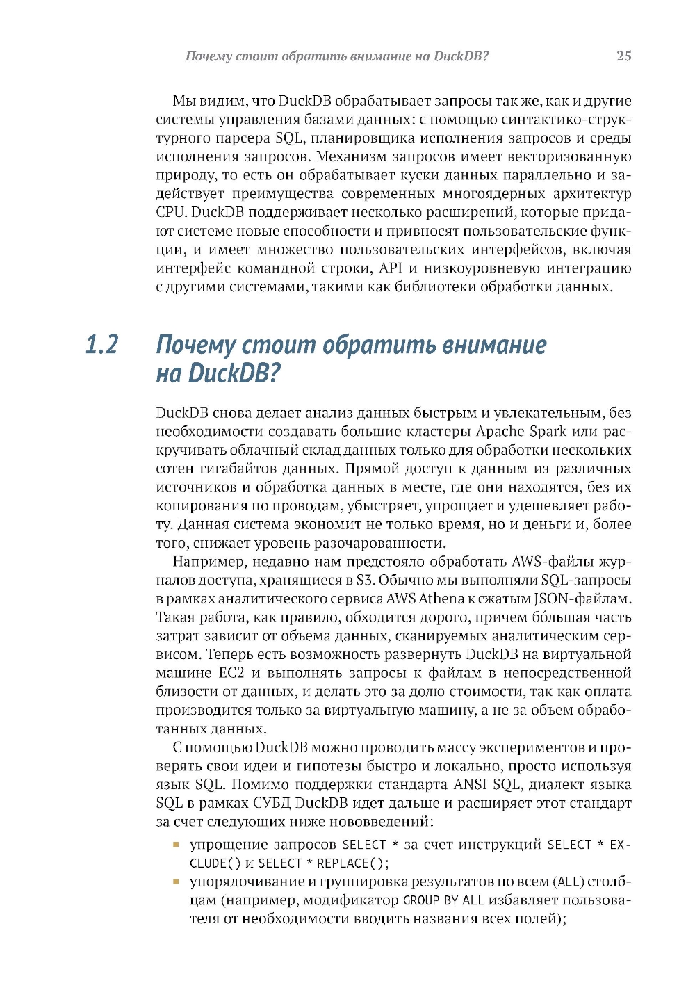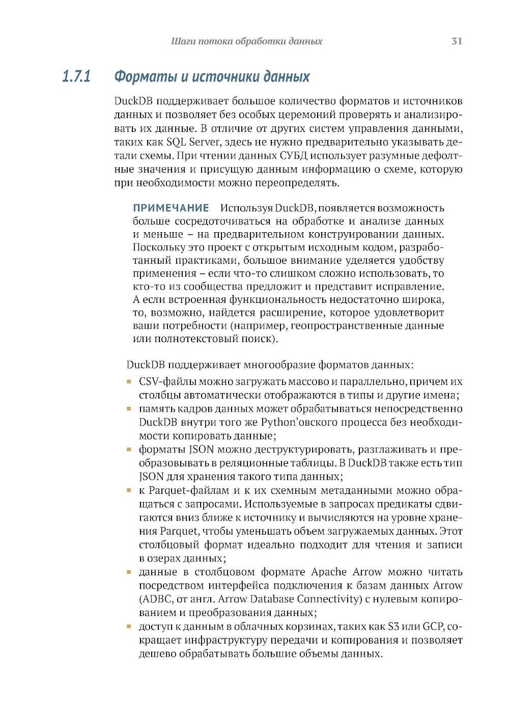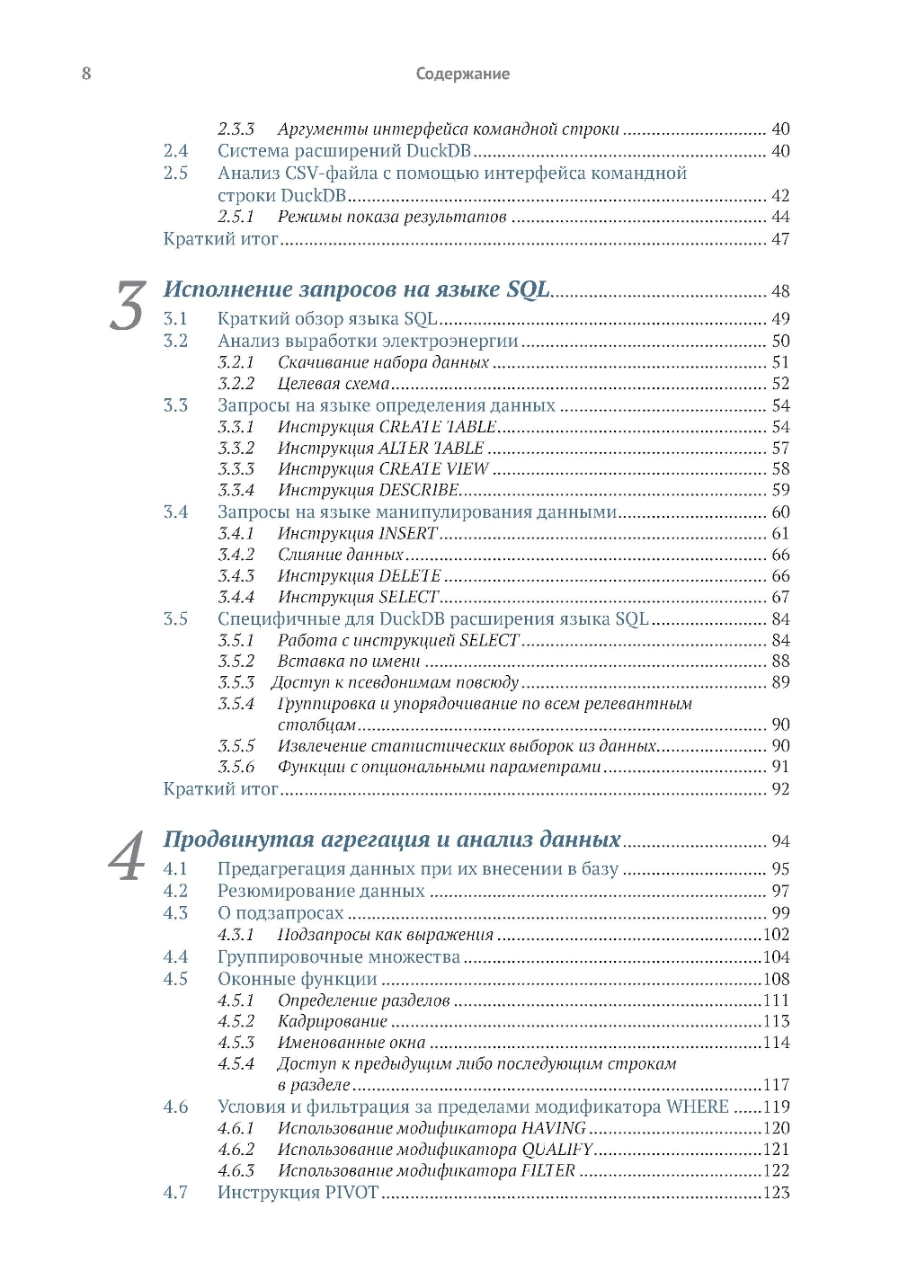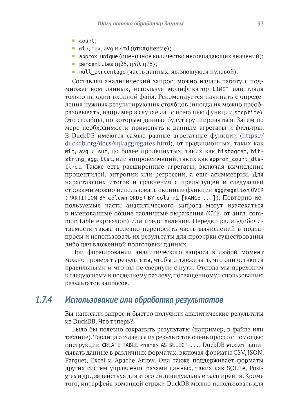 Книга рассказывает о приемах эффективной работы со столбцово-ориентированной системой управления базами данных DuckDB, которая легко встраивается в аналитические приложения, работает на ноутбуке и оперирует данными практически из любого источника, включая JSON, CSV, Parquet, SQLite и Postgres. Автор проведет вас по многочисленным примерам, начиная с настройки системы, формирования первого запроса на языке SQL и заканчивая сборкой конвейеров данных и встраиванием DuckDB в качестве локального хранилища данных для веб-приложений. Каждая новая тема сопровождается практическим проектом, благодаря чему вы сможете увидеть работу DuckDB в действии.| Издательство | ДМК Пресс |