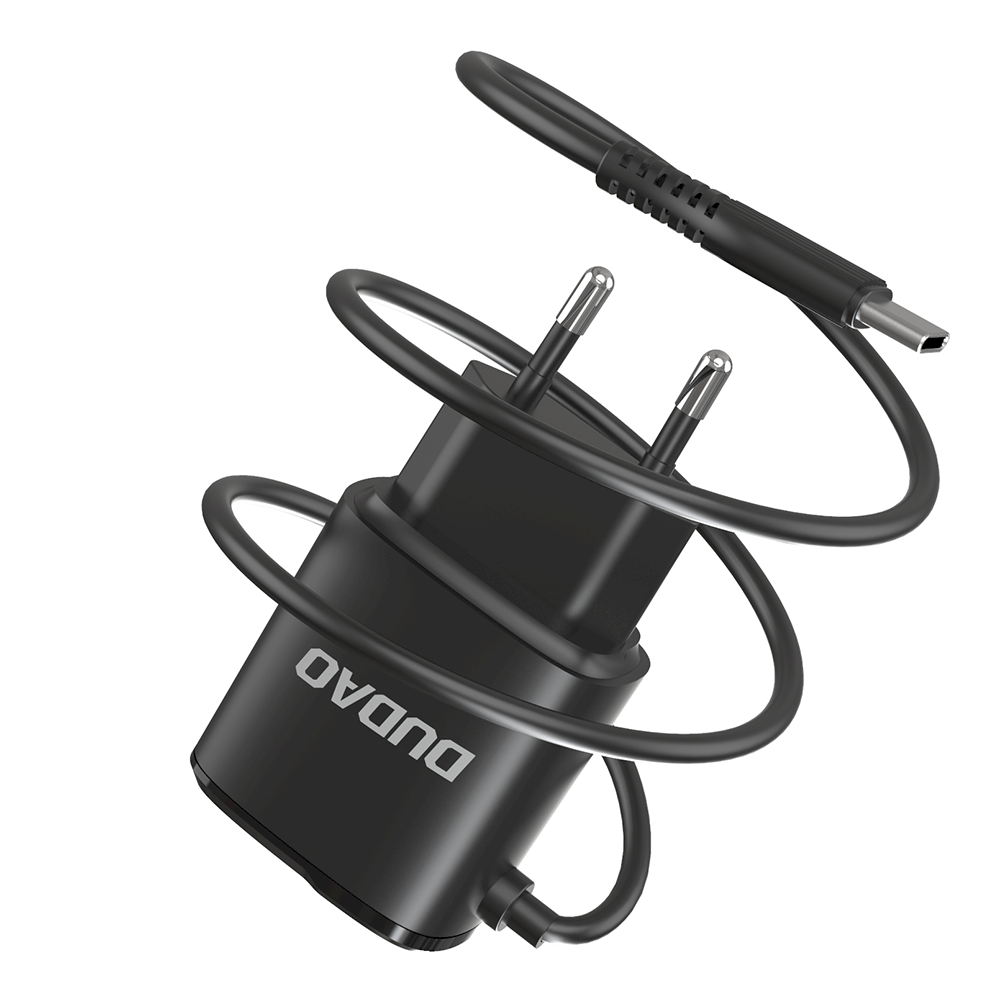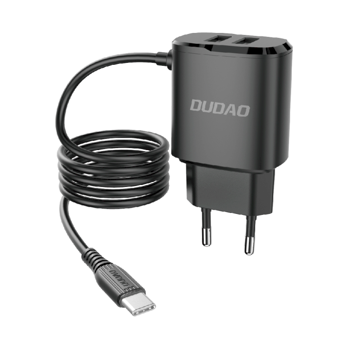 Dudao 2x USB wall charger with built-in USB Typ C cable