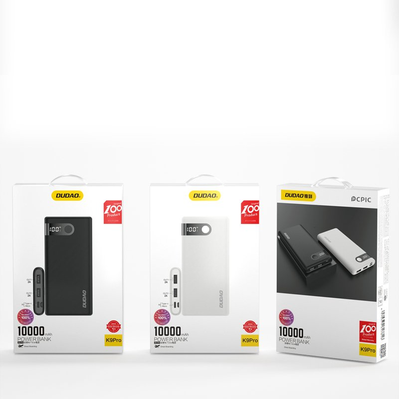 Dudao K9Pro is a high-quality power bank with an extremely capacious battery ( 10,000 mAh ). A handy accessory equipped with a number of useful ports. 2 USB slots, which allow you to renew the energy of 2 devices at the same time, and the input micro USB and USB Type C increase the room for maneuver regarding the cable that will charge the power bank.