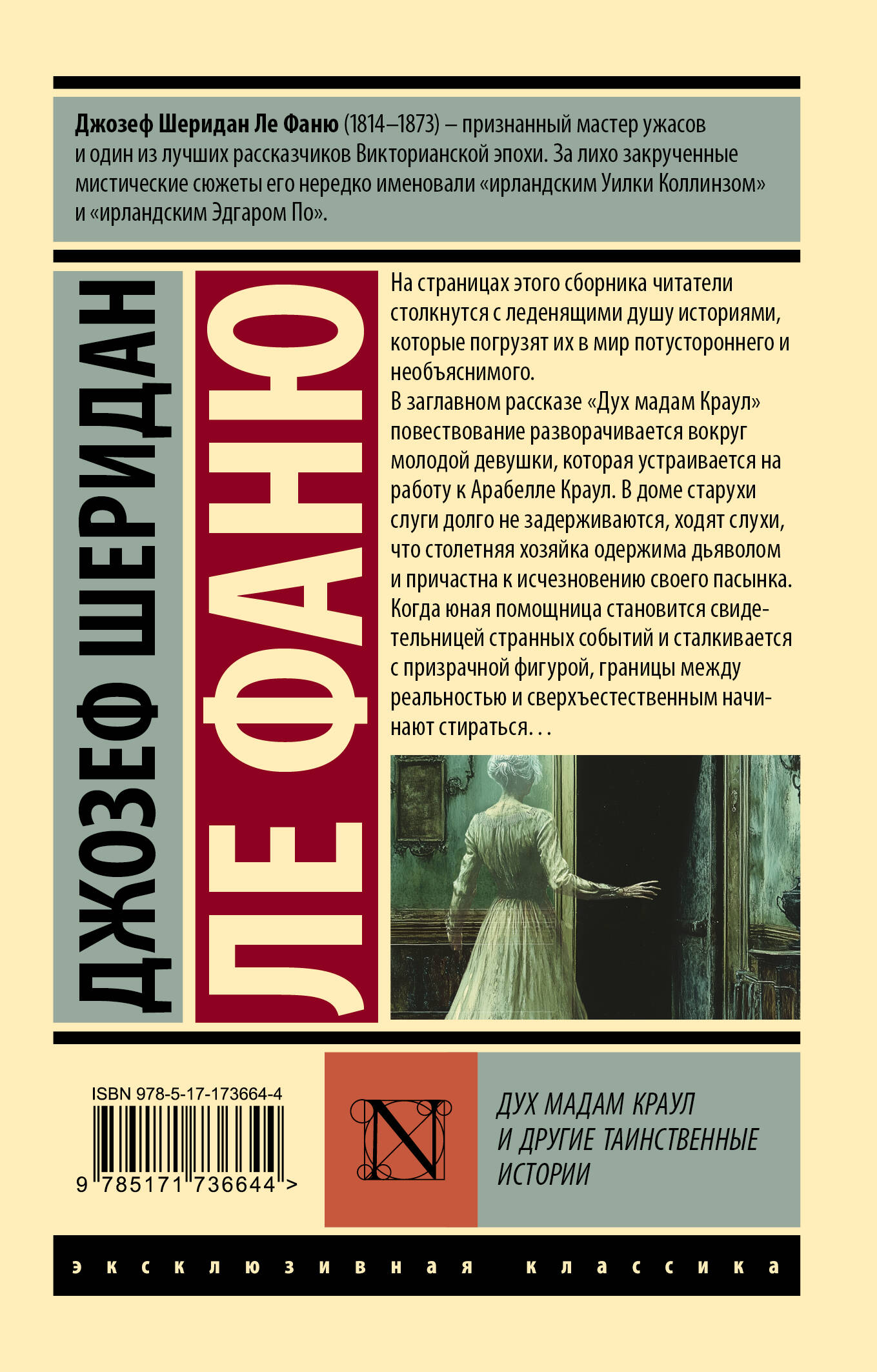 - Джозеф Шеридан Ле Фаню - известный ирландский писатель XIX века, автор книги «Кармилла». - Излюбленной темой творчества Ле Фаню были встречи с привидениями и другими сверхъестественными явлениями, его произведения оказали огромное влияние на Брэма Стокера. - На страницах этого сборника читатели столкнутся с леденящими душу историями, которые погрузят их в мир потустороннего и необъяснимого. - Издание в серии «Эксклюзивная классика» - в удобном карманном формате и узнаваемом оформлении.| Издательство | Издательство "АСТ" |