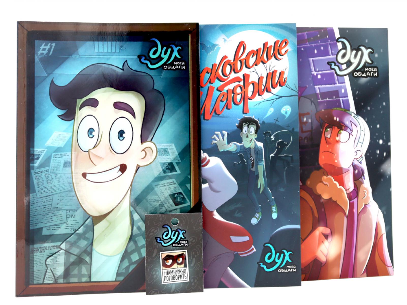 Комплект состоит из трех комиксов «Духа моей общаги» со значком. Эти комиксы о призраке из общежития - не только пугающие и забавные истории, но и настоящие пособия для всех, кто увлекается анимацией и сам мечтает однажды начать анимировать свои рисунки.| Издательство | Эксмо |