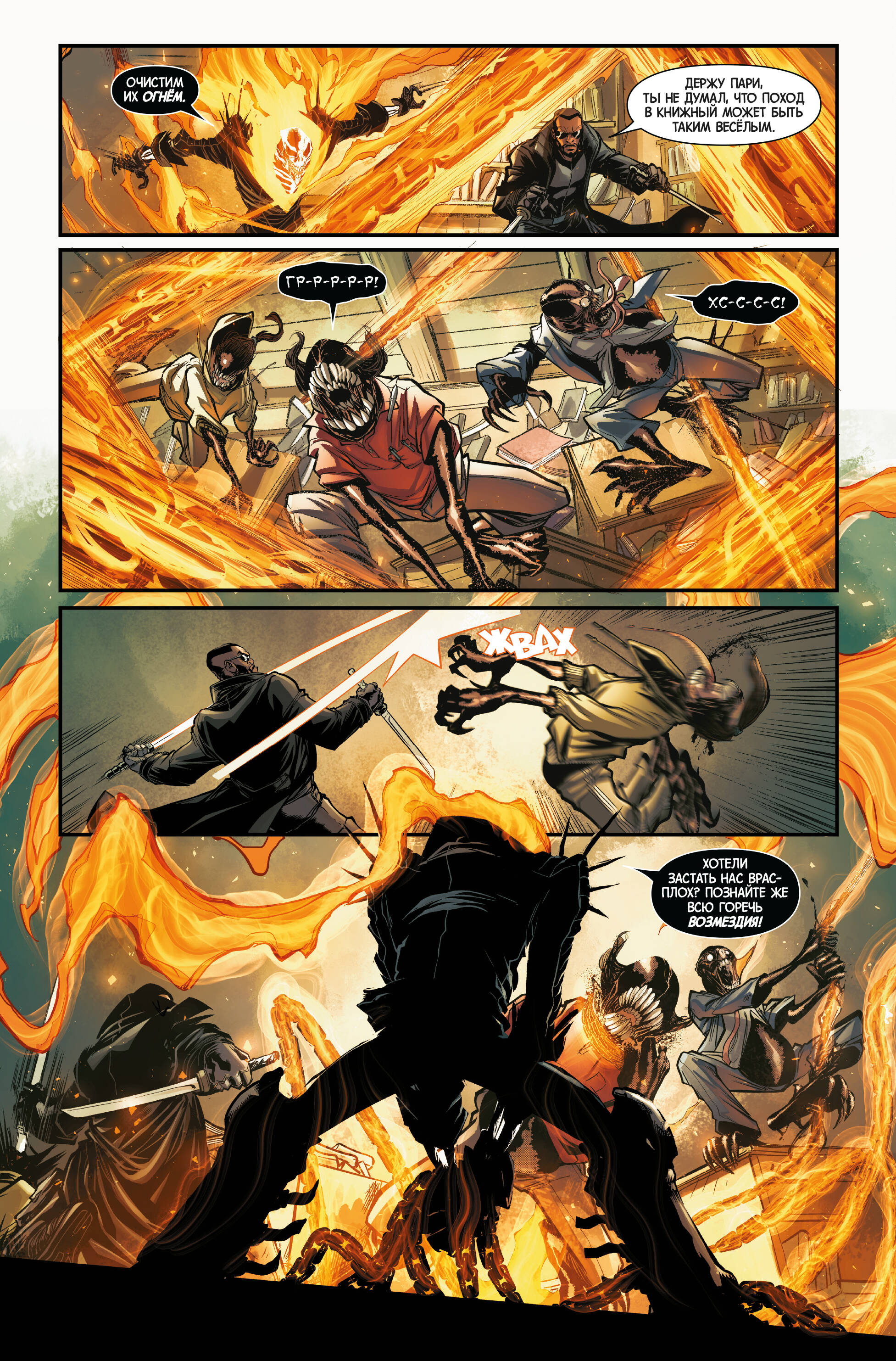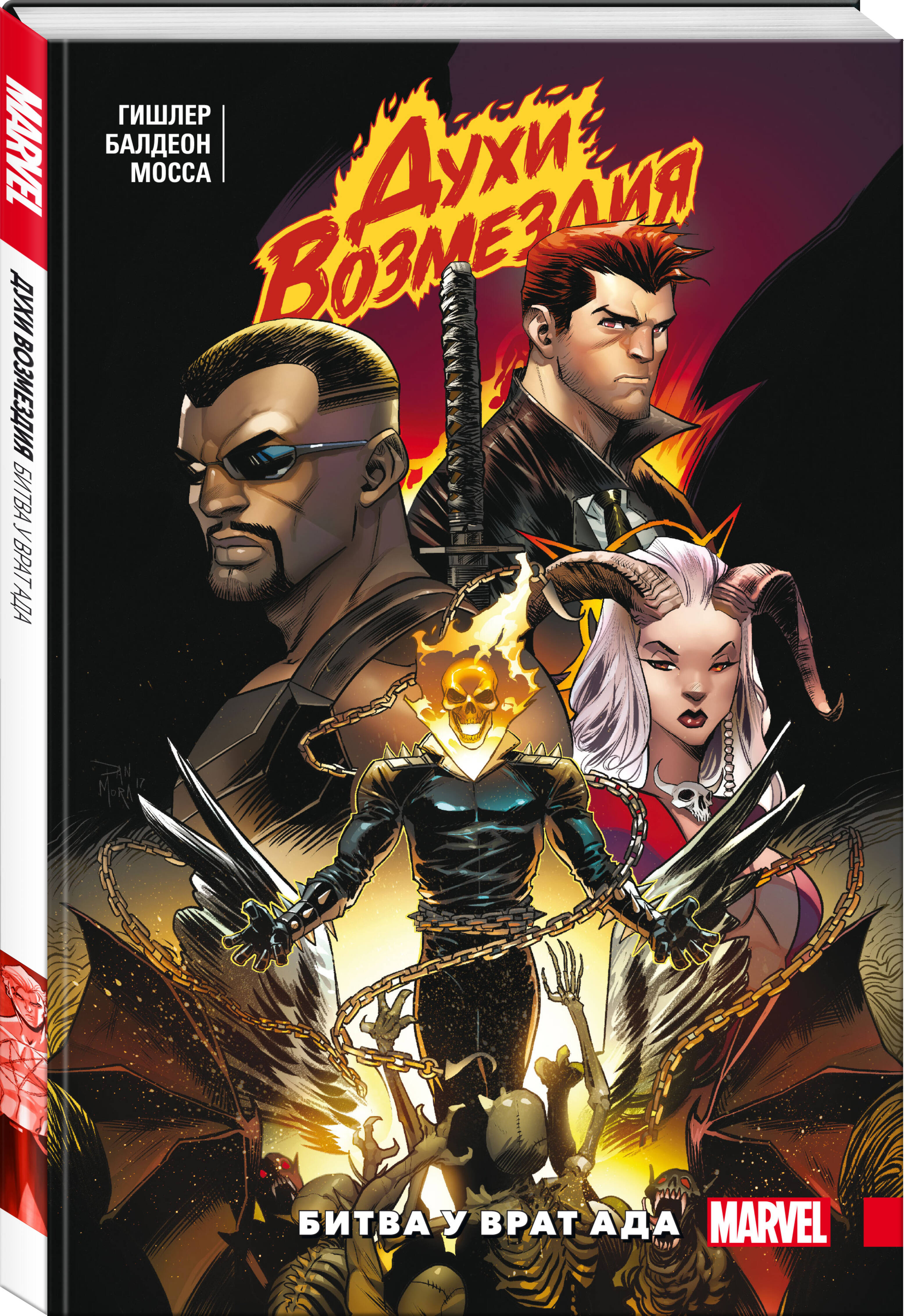 Мёртвый ангел. Серебряная пуля. Обещание. Веками в незримом противостоянии между небесами и преисподней царило хрупкое равновесие. Но убийство ангела меняет всё! Джонни Блейз должен найти и покарать виновных, однако в одиночку ему не справиться. И тогда герои, обитающие в темнейших глубинах вселенной Marvel, создают нечестивый союз. Призрачный Гонщик! Хеллстром! Сатана! Блэйд! Они - духи возмездия, и только им под силу распутать заговор против самого Бога. Зловещий Некродамус грозит миру катаклизмом, невиданным со времён Ветхого Завета. Рокот боевых барабанов всё громче, и лишь духи возмездия способы встать меж армиями рая и ада. В книге собраны комиксы «Духи возмездия» #1-5. Авторы: Виктор Гишлер, Дэвид Балдеон и Андрес Мосса.