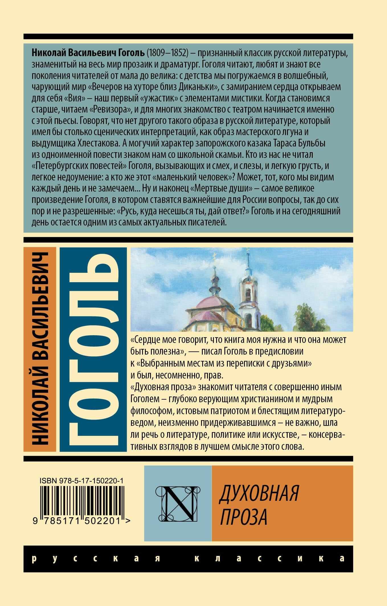 "Сердце мое говорит, что книга моя нужна и что она может быть полез-на", - писал Гоголь в предисловии к "Выбранным местам из переписки с друзьями" и был, несомненно, прав. "Духовная проза" знакомит читателя с совершенно иным Гоголем - глубоко верующим христианином и мудрым философом, истовым патриотом и блестящим литературоведом, неизменно придерживавшимся - не важно, шла ли речь о литературе, политике или искусстве, - консервативных взглядов в лучшем смысле этого слова.| Издательство | ИЗДАТЕЛЬСТВО "АСТ" |