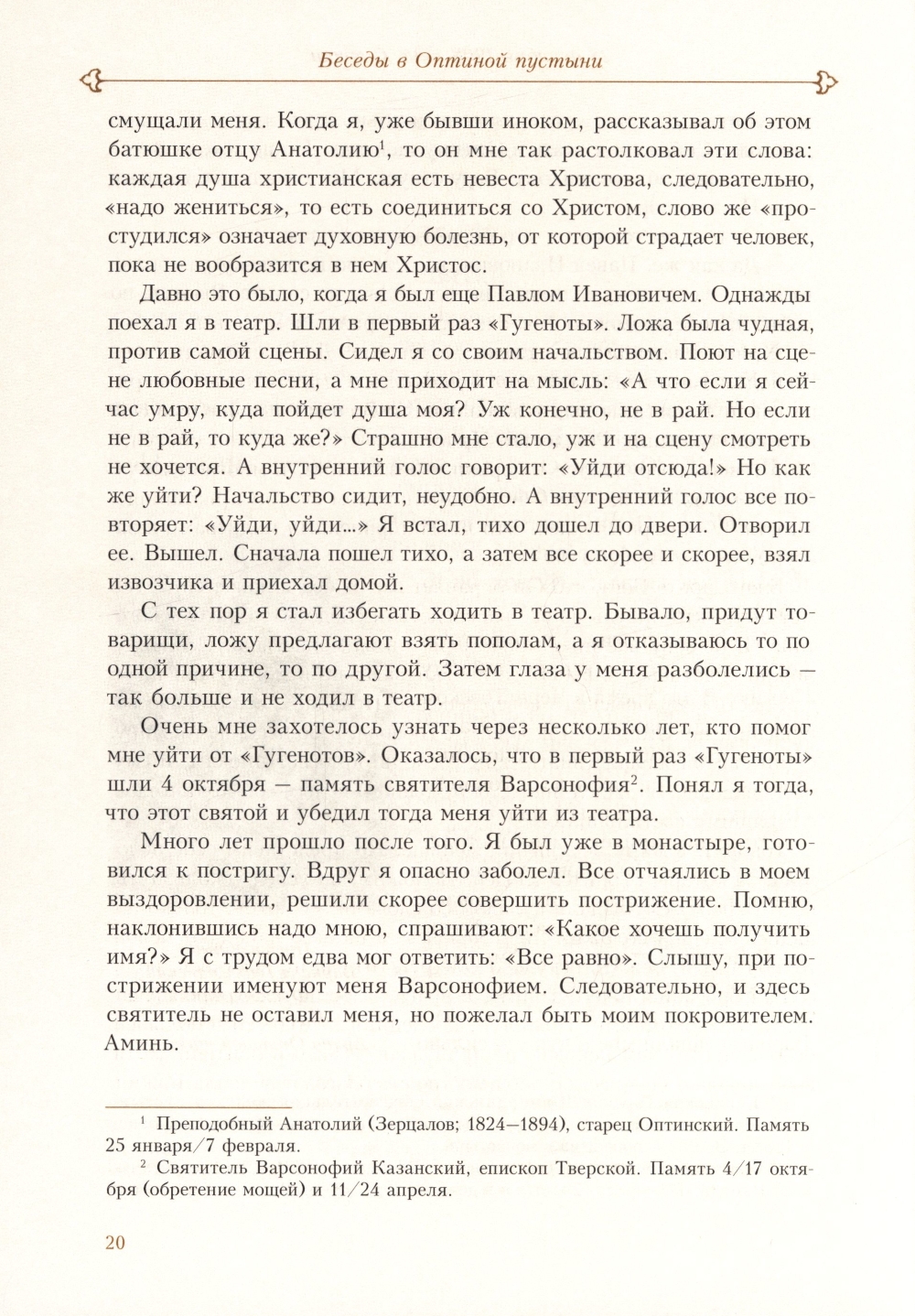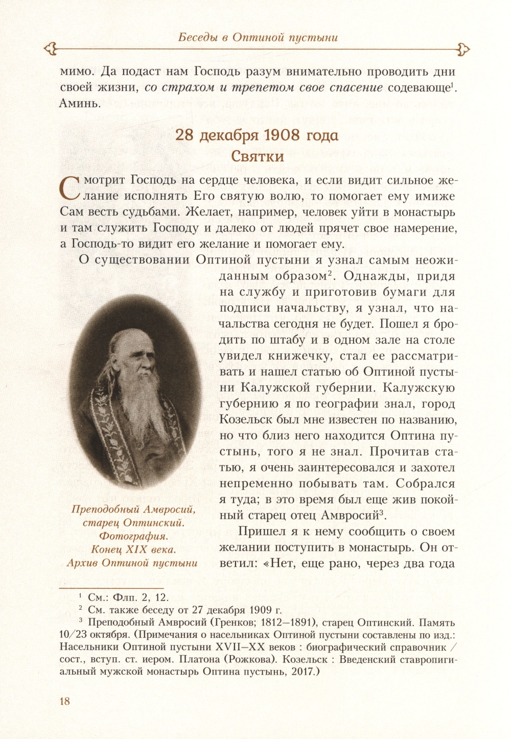 Издательство Оптиной пустыни предлагает читателю новое, исправленное издание духовных бесед замечательного Оптинского старца Варсонофия, а также его «Келейные записки», которые представляют большую ценность для интересующихся историей Русской Церкви, монастыря Оптиной пустыни, проблемами монашества и духовной жизни.