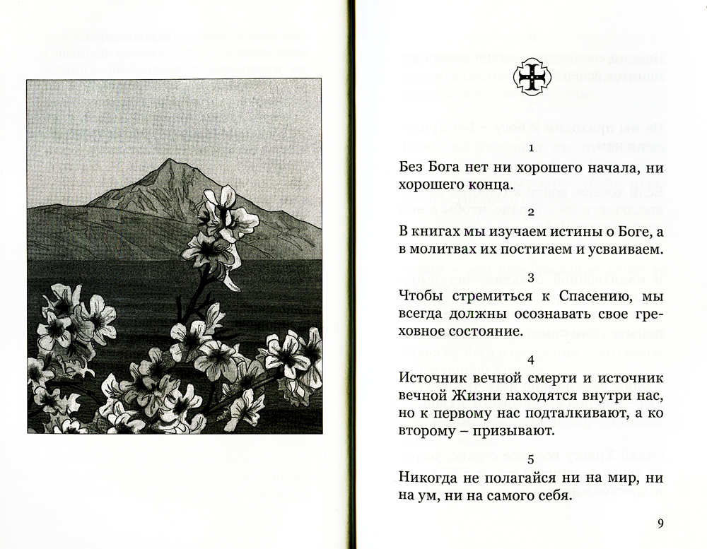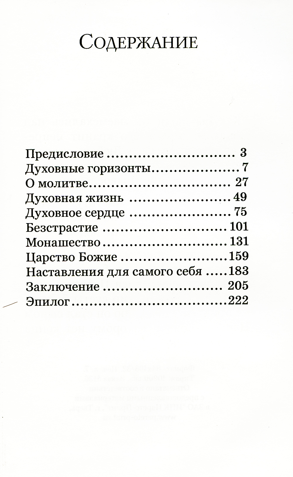 «Духовные горизонты, или Царство Божие» - новая книга монаха Симеона, которая продолжает серию информативных произведений этого автора: «Восхождение к Небу» и «Девять слов». Все эти книги объединяет глубокая укорененность в святоотеческой традиции и оригинальный авторский стиль, простота изложения, живой полновесный язык, яркая образность и афористичность выражений. «Духовные горизонты» можно отнести к классическому жанру сотниц. Эти изречения состоят из восьми глав (число восемь в Библейской Истории указывает на бесконечность), заключения и эпилога. Каждая глава состоит из ста кратких главок. Любая малая главка представляет собой или афоризм, или сентенцию.| Издательство | Святая Гора Афон |