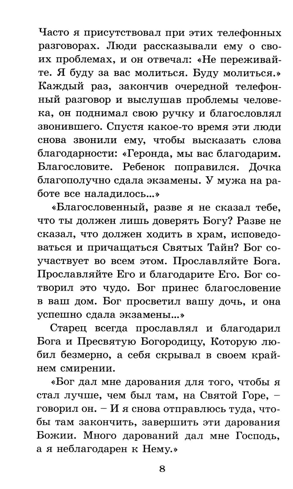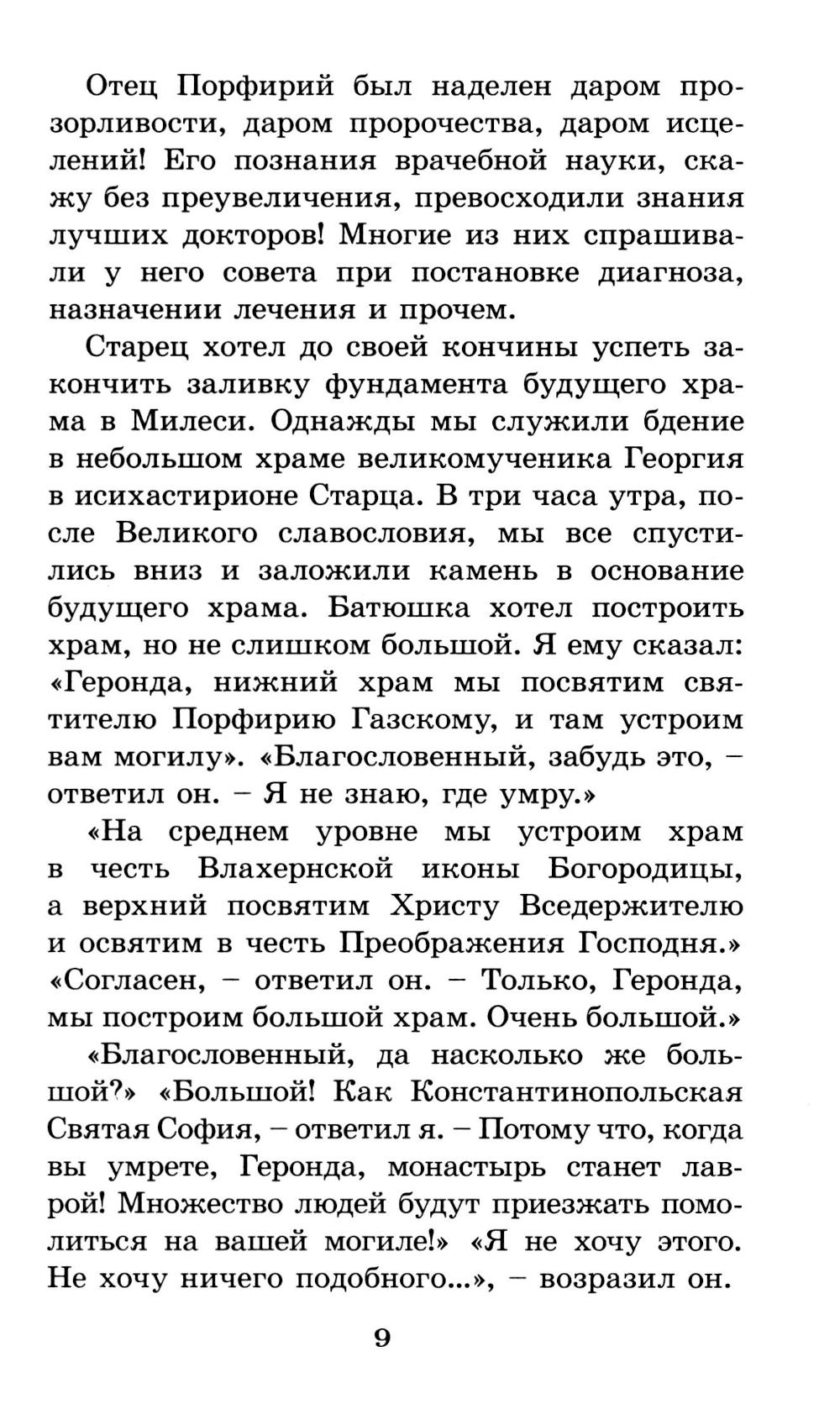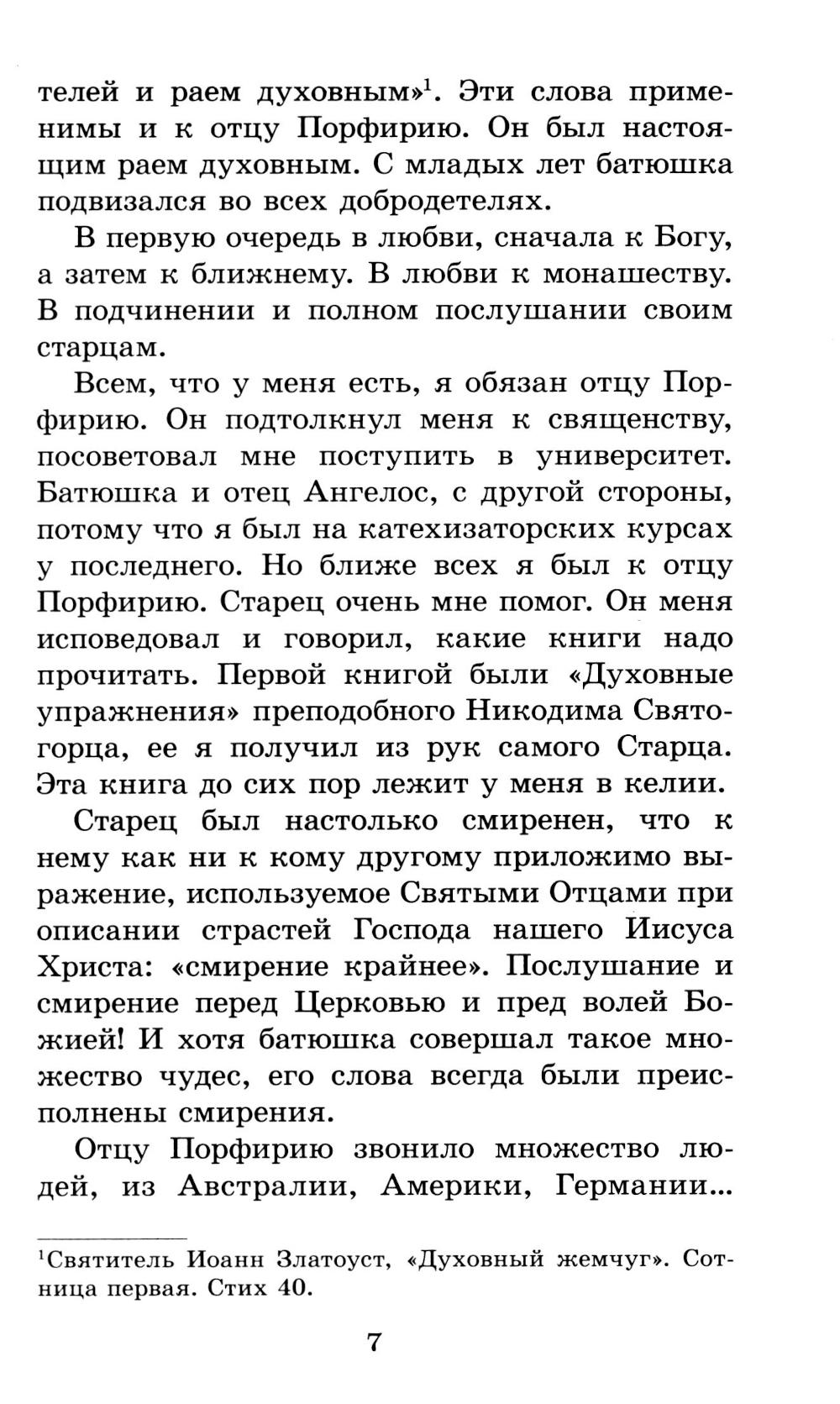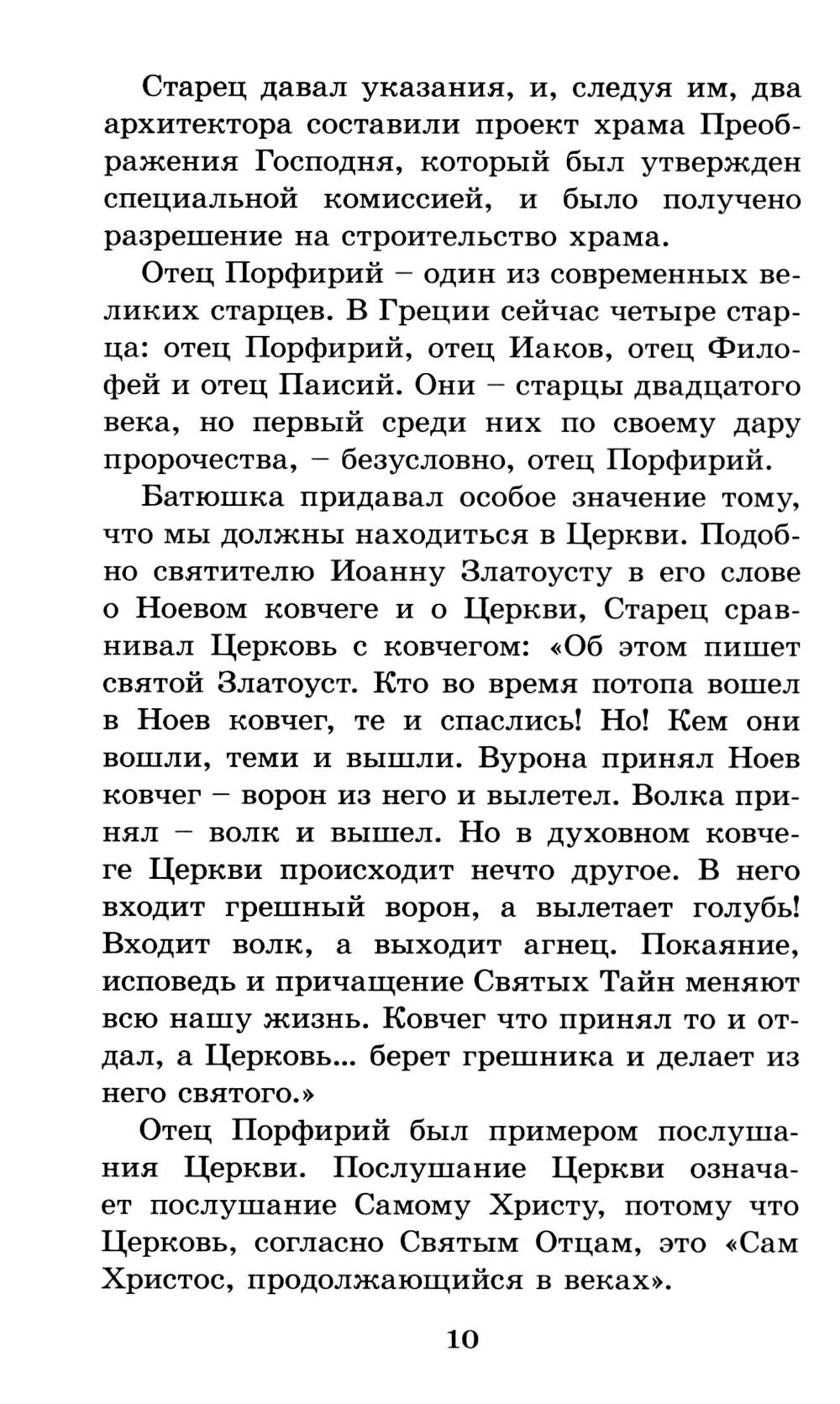По мере прочтения этой книги каждый будет удивляться и восхищаться все больше и больше... Чудес, которые Бог совершил по молитвам преподобного Порфирия, не только много, но они совершенно невероятны... Глубокий духовный анализ различных ситуаций и советы, которые по благодати Божией давал этот почти безграмотный человек, пронизаны Божественной премудростью. Люди, знавшие преподобного, постарались предельно точно изложить то, что они слышали и видели, общаясь с ним.| Издательство | Синтагма |