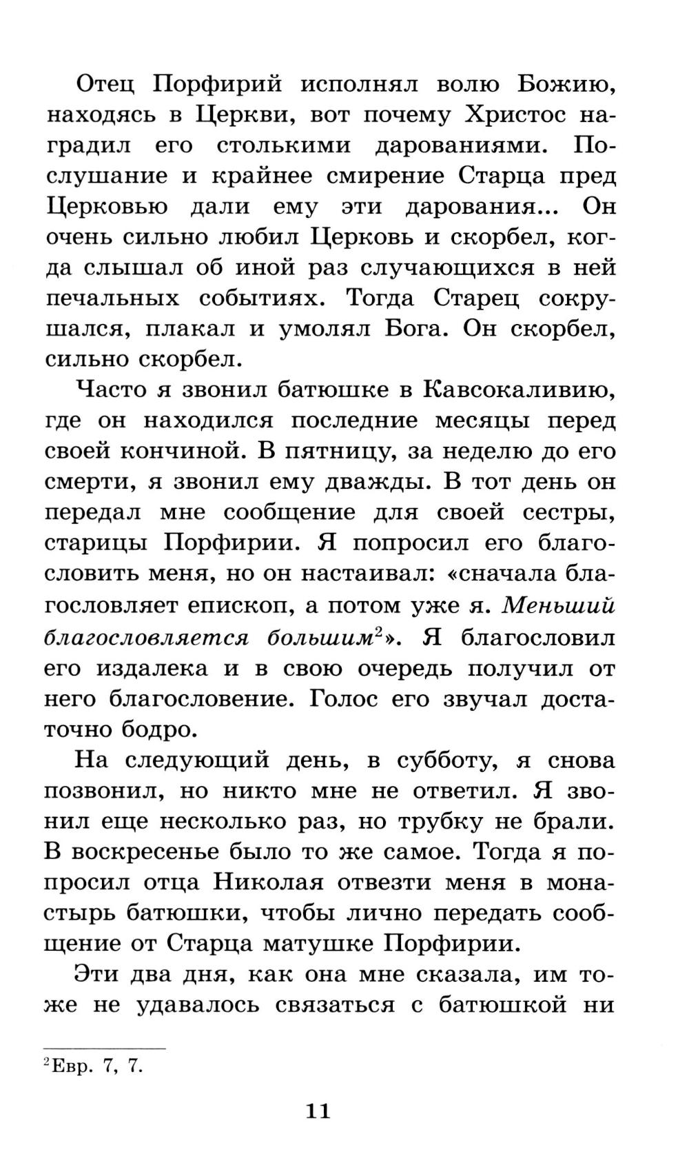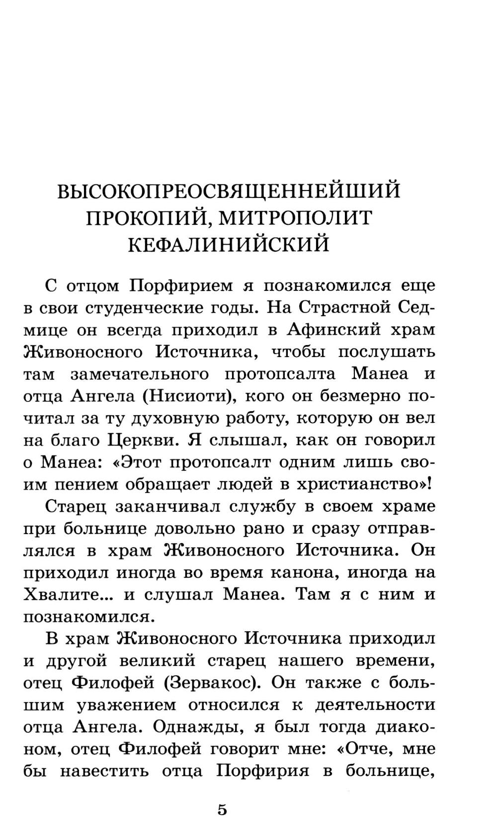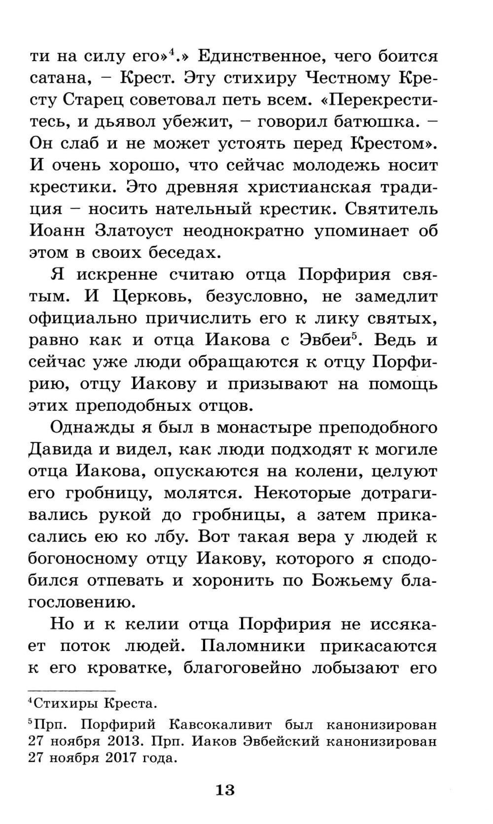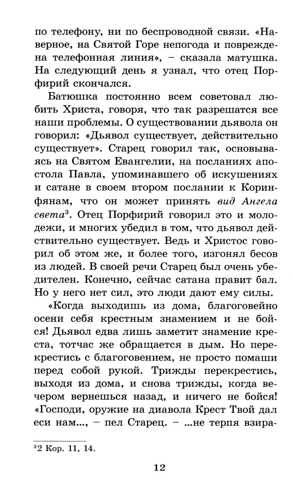 По мере прочтения этой книги каждый будет удивляться и восхищаться все больше и больше... Чудес, которые Бог совершил по молитвам преподобного Порфирия, не только много, но они совершенно невероятны... Глубокий духовный анализ различных ситуаций и советы, которые по благодати Божией давал этот почти безграмотный человек, пронизаны Божественной премудростью. Люди, знавшие преподобного, постарались предельно точно изложить то, что они слышали и видели, общаясь с ним.| Издательство | Синтагма |