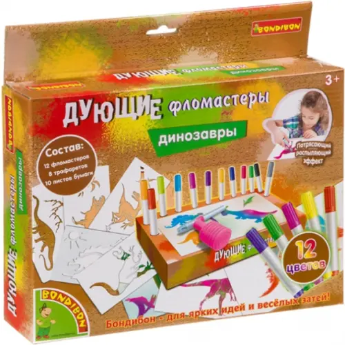 Состав набора: 12 фломастеров, 8 трафаретов, 10 листов бумаги.