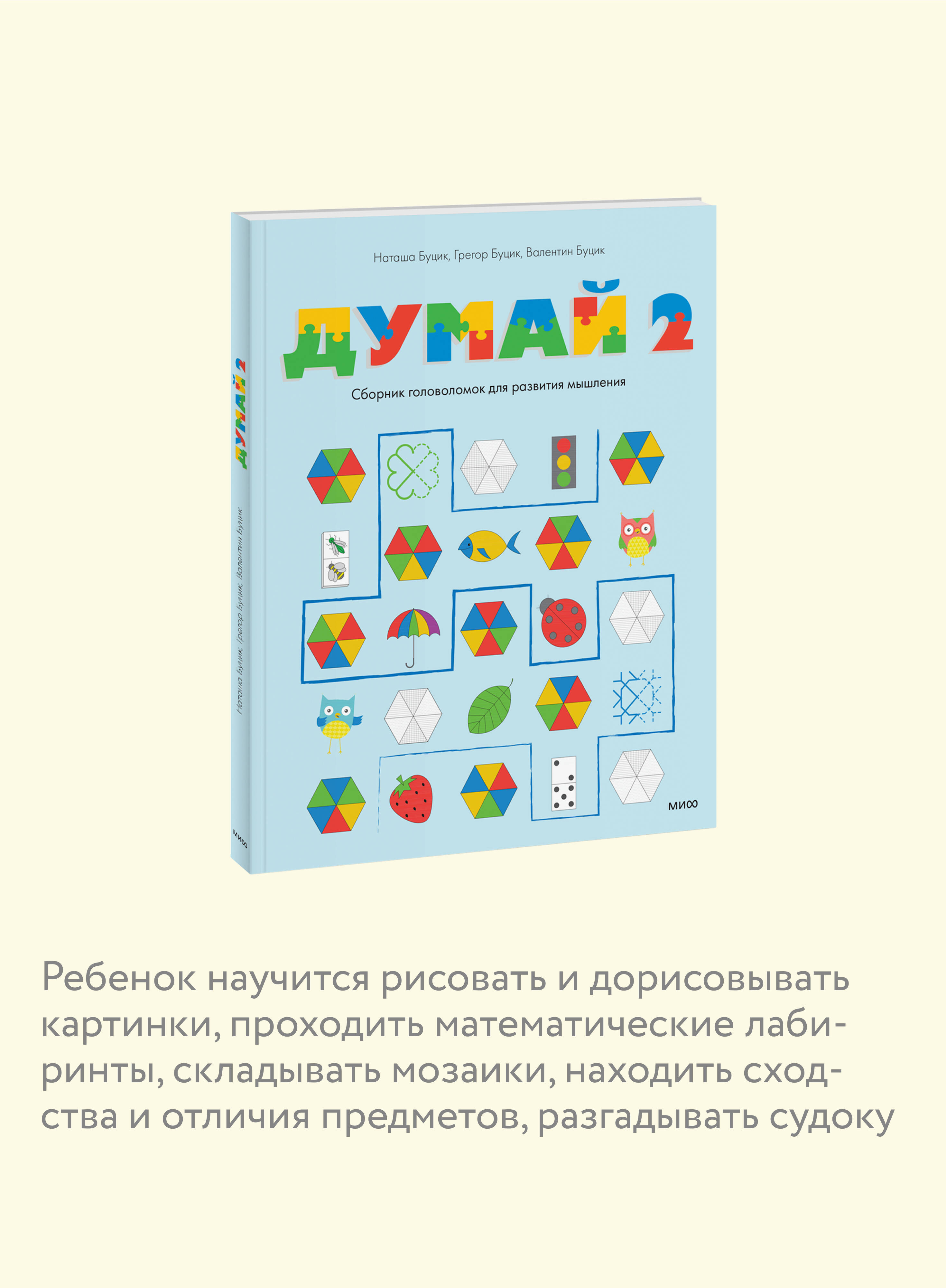 "Новая книга серии "Думай 2. Сборник головоломок для развития мышления" создана командой профессиональных авторов. Она состоит из 12 разделов, которые содержат около 150 разнообразных заданий, развивающих различные интеллектуальные способности: умственные и аналитические способности, пространственное и логическое мышления, математические навыки. Главная особенность этой книги - наличие заданий на развитие дивергентного мышление, которое отвечает за оригинальность и творчество. Предназначена для детей от 5 лет. "| Издательство | Манн, Иванов и Фербер |