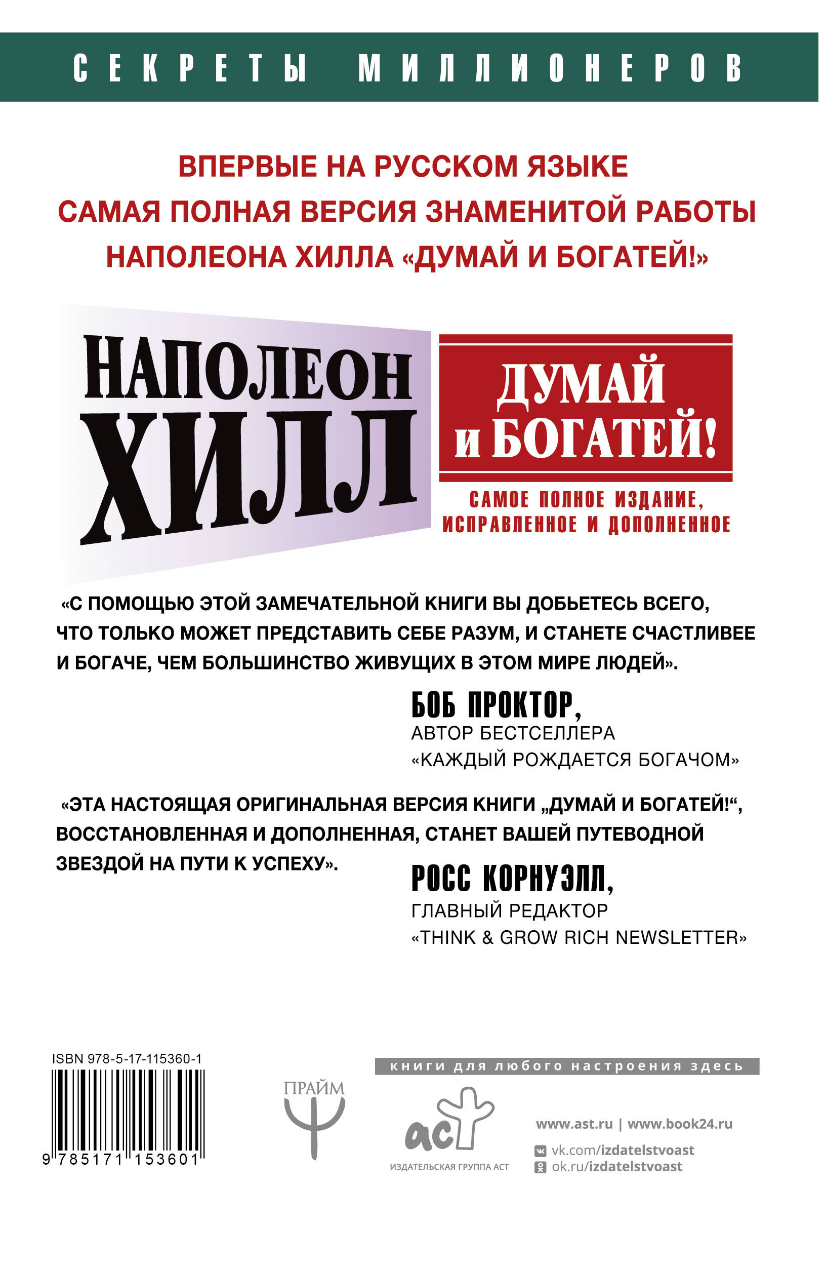 Аннотация: ДУМАЙ И БОГАТЕЙ! Самое полное издание, исправленное и дополненное
