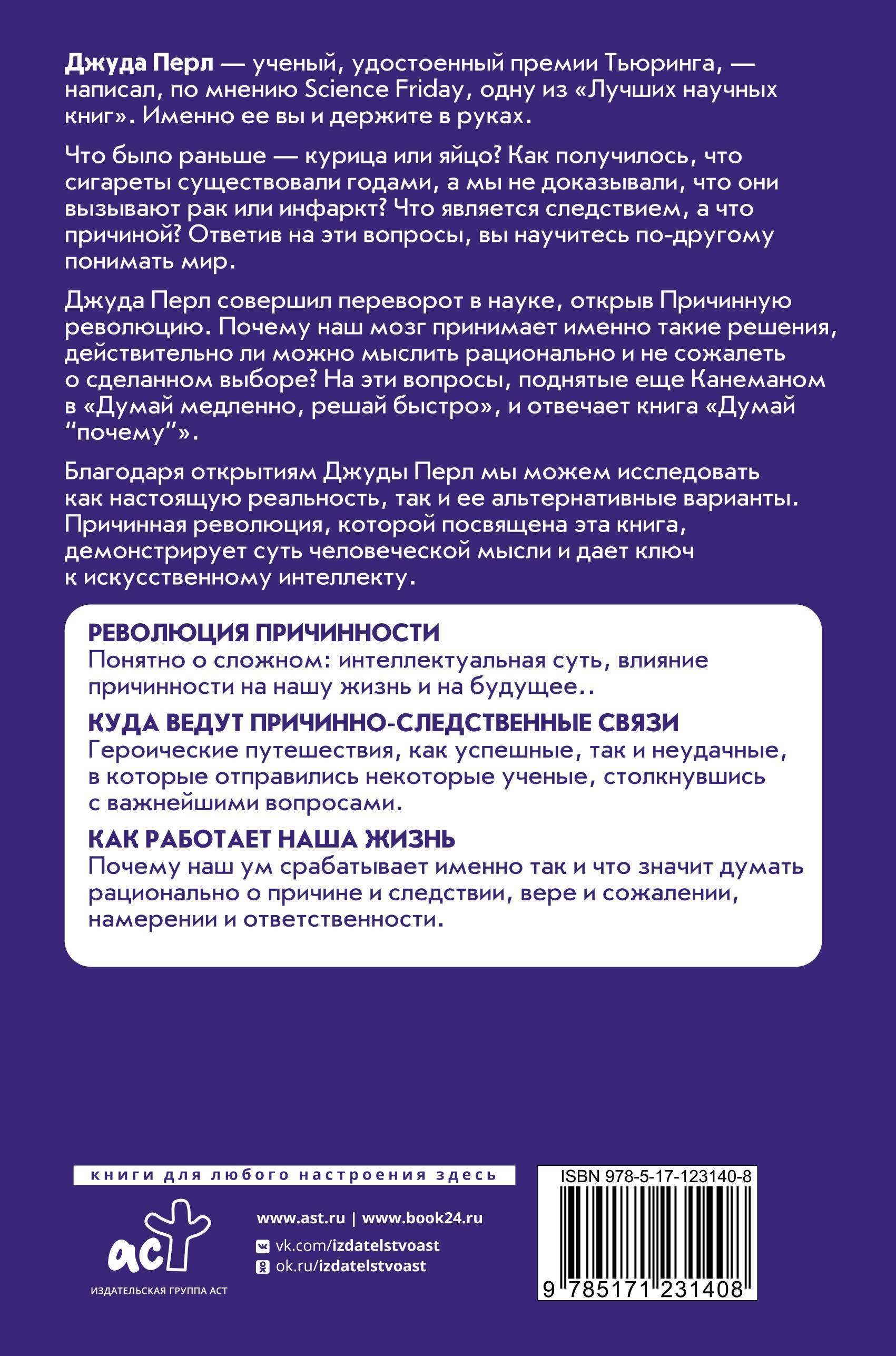 Книга о возможностях нашего мышления с точки зрения причинности. Наш мозг хранит бесконечный объем знаний о причинно-следственных связях. Потенциал этого знания невероятно велик. Поддержав его отточенными данными, мы сможем использовать этот орган для решения повседневных задач любого уровня - от покупки зубной пасты до лечения тяжелых болезней. «Вы умнее ваших данных», - говорит автор книги. Новая наука о причинном анализе позволит нам глубже осознать, как мы мыслим, усилит наши врожденные способности к постижению данных - в больших и малых объемах. Книга для тех, кто хочет узнать, почему наш ум срабатывает именно так и как им управлять.| Издательство | ИЗДАТЕЛЬСТВО "АСТ" |