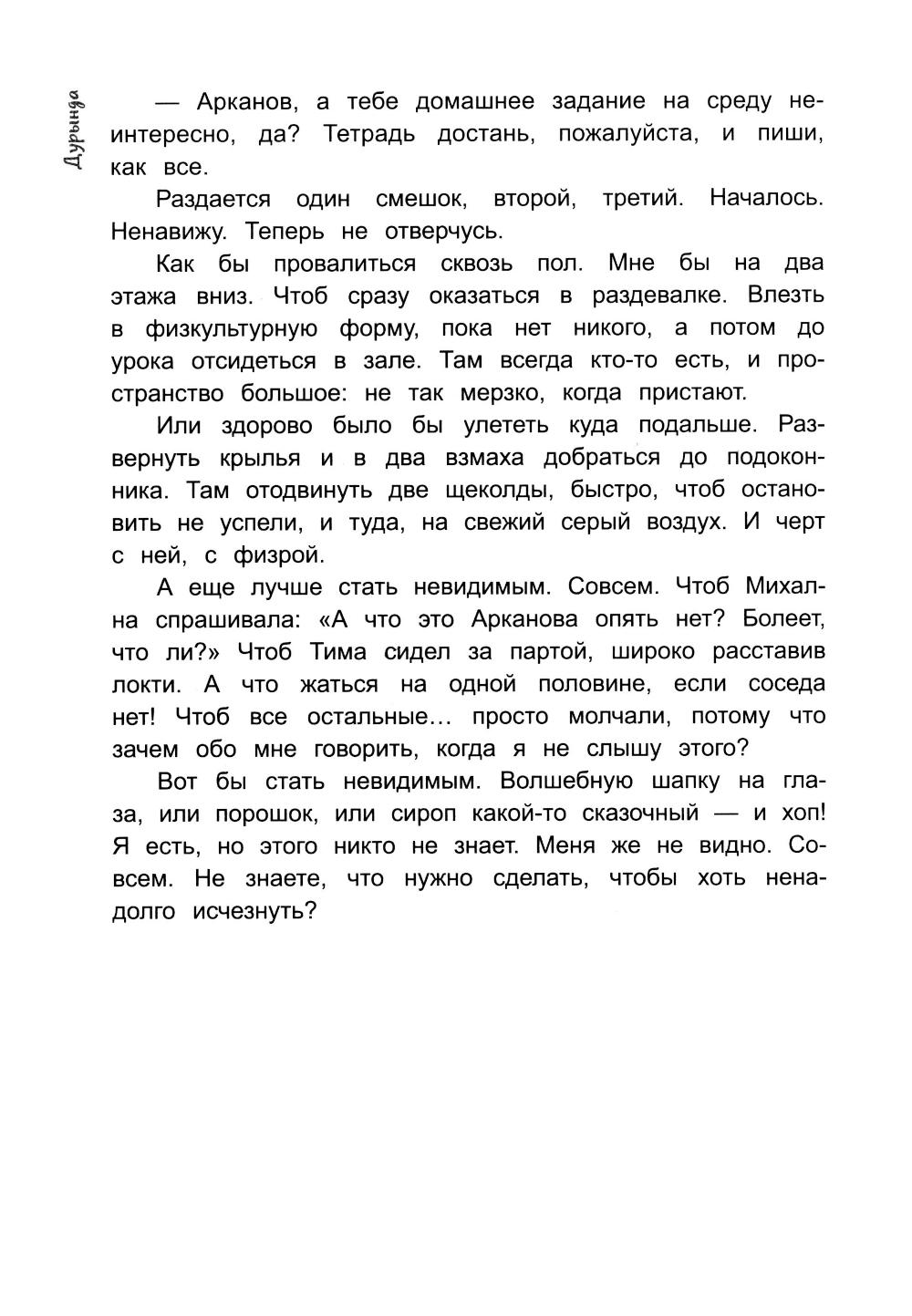 Пашка ненавидит школу. Одноклассники его не любят, учителя придираются и занижают оценки. Она вообще не замечает его существования. Дома тоже дела не очень: отец пропадает на работе, мама... скучная. Друг у него один, и тот - так себе. Да и сам Пашка, если честно, - просто дурында, как его когда-то назвал близкий человек. И теперь Пашка мечтает об одном: просто исчезнуть хотя бы на время. На один день. Чтобы никто его не беспокоил, не замечал... Стать невидимым. А что, если это возможно? Что, если один день может изменить все? Дополняют историю иллюстрации Леси Улановой.| Издательство | Антология |
