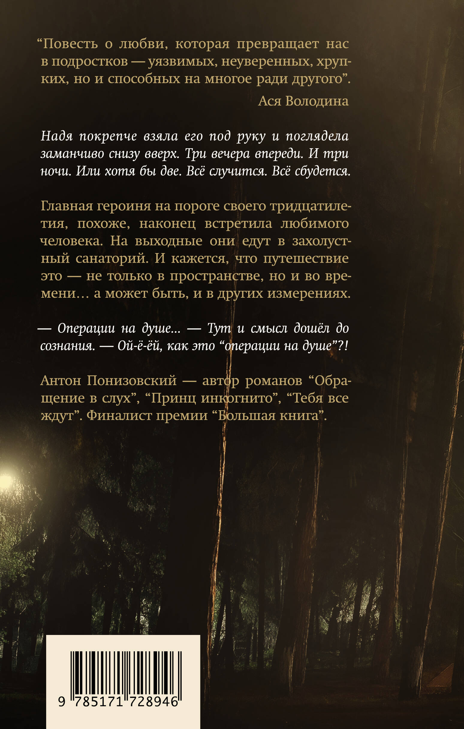 - Новинка серии современной прозы «Классное чтение». - Антон Понизовский - писатель, автор произведений «Обращение в слух», «Принц Инкогнито», «Тебя все ждут», финалист премии «Большая книга». - «Женская проза» в парадоксальном мужском исполнении, лирика с элементами фантастики (или сказки). На пороге тридцатилетия героиня, похоже, наконец встретила любимого человека. На выходные они едут в загородный санаторий, и оказывается, что путешествие это - не только в пространстве, но и во времени… а может быть, и в иных измерениях. - Читайте другие книги серии: «Свечи Апокалипсиса» Татьяны Замировской, «Лев и Корица» Юрия Буйды, Imagine Дмитрия Данилова.| Издательство | Издательство "АСТ" |