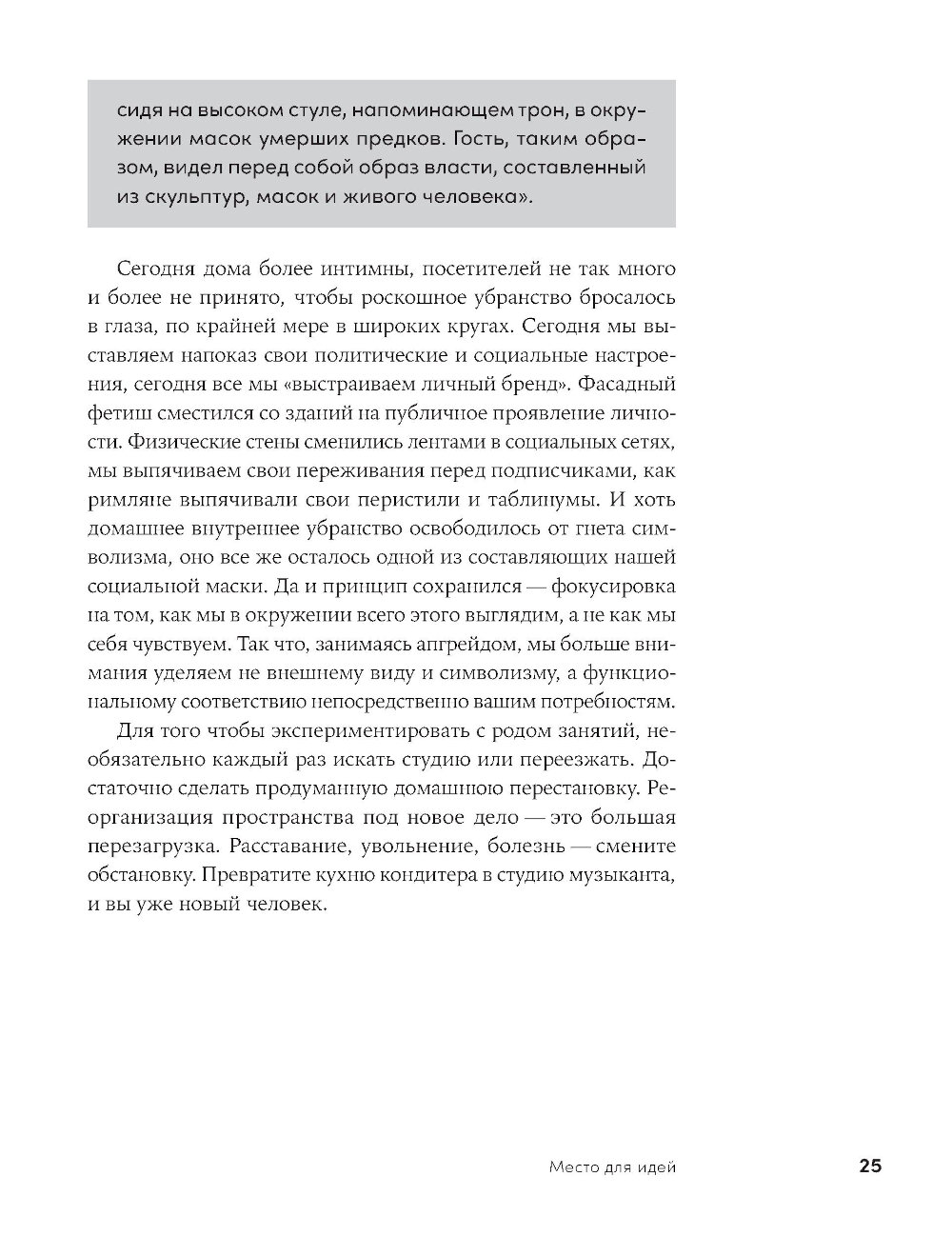 Как в идеале должна выглядеть квартира боксера? Квартира йога, преподавателя, программиста или массажиста? Городские квартиры перестают быть только местом для сна и хранения вещей. Они уже давно превратились в площадки для развития, обучения и работы, но при строительстве это по-прежнему не учитывается. Советы и рекомендации архитектора и концептуалиста Екатерины Рейзбих помогут вам адаптировать вашу квартиру для любых нужд - от создания творческой студии до уютного уголка для работы. Из книги вы узнаете об авторской методике проектирования пространства, основанной на изучении поведения человека и сможете сделать из вашей квартиры удобное место для достижения ваших жизненных целей.| Издательство | Альпина Паблишер |