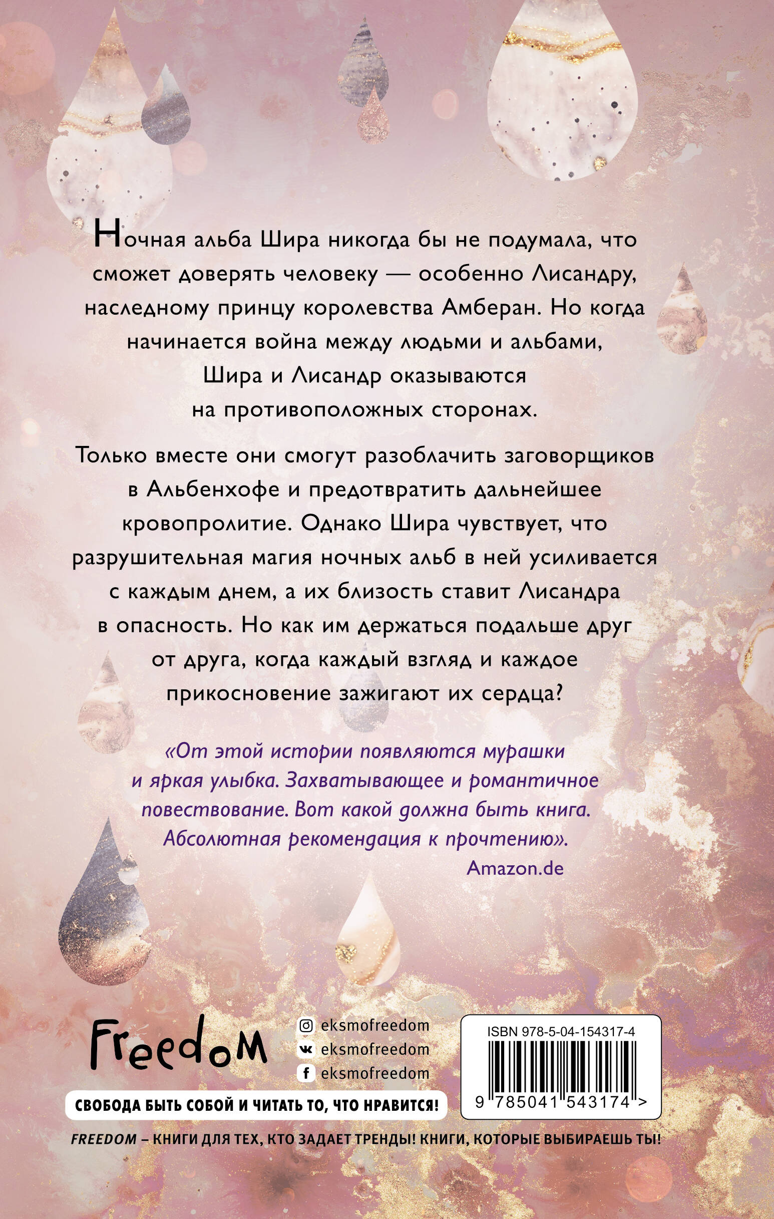 Ночная альба Шира никогда бы не подумала, что сможет доверять человеку - особенно Лисандру, наследному принцу королевства Амберан. Но когда начинается война между людьми и альбами, Шира и Лисандр оказываются на противоположных сторонах. Только вместе они смогут разоблачить заговорщиков в Альбенхофе и предотвратить дальнейшее кровопролитие. Однако Шира чувствует, что разрушительная магия ночных альб в ней усиливается с каждым днем, а их близость ставит Лисандра в опасность. Но как им держаться подальше друг от друга, когда каждый взгляд и каждое прикосновение зажигают их сердца? Долгожданное продолжение «Хроник сумерек»! Погрузитесь в новый магический мир альб - существ, сотканных из света, крови и тьмы! Чем обернется война между альбами и людьми? Какую опасность таят в себе ночные альбы? Узнайте на страницах этой книги! «Мы радуемся и переживаем вместе с главными героями. Абсолютная рекомендация к прочтению». - Amazon «Самое лучше в этой истории - это дворцовые интриги. То, как автор здесь все закрутила, - я смаковала, как самую вкусную черешенку. Иногда от несправедливости и обманов меня саму трясло. Книга зацепила с первой главы». - sofi.bookdragon_96| Издательство | ООО "Издательство "Эксмо" |