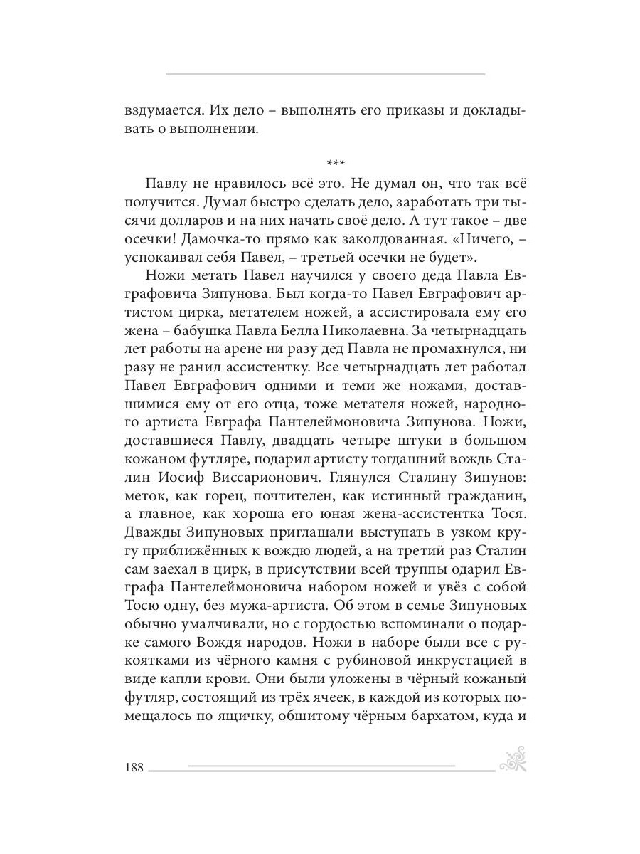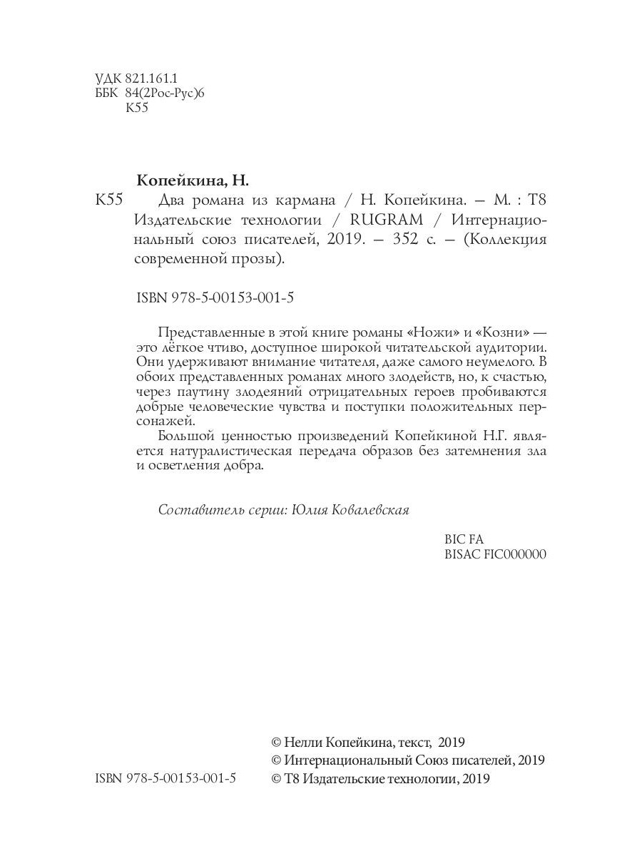 Представленные в этой книге романы «Ножи» и «Козни» - это лёгкое чтиво, доступное широкой читательской аудитории. Они удерживают внимание читателя, даже самого неумелого. В обоих представленных романах много злодейств, но, к счастью, через паутину злодеяний отрицательных героев пробиваются добрые человеческие чувства и поступки положительных персонажей.