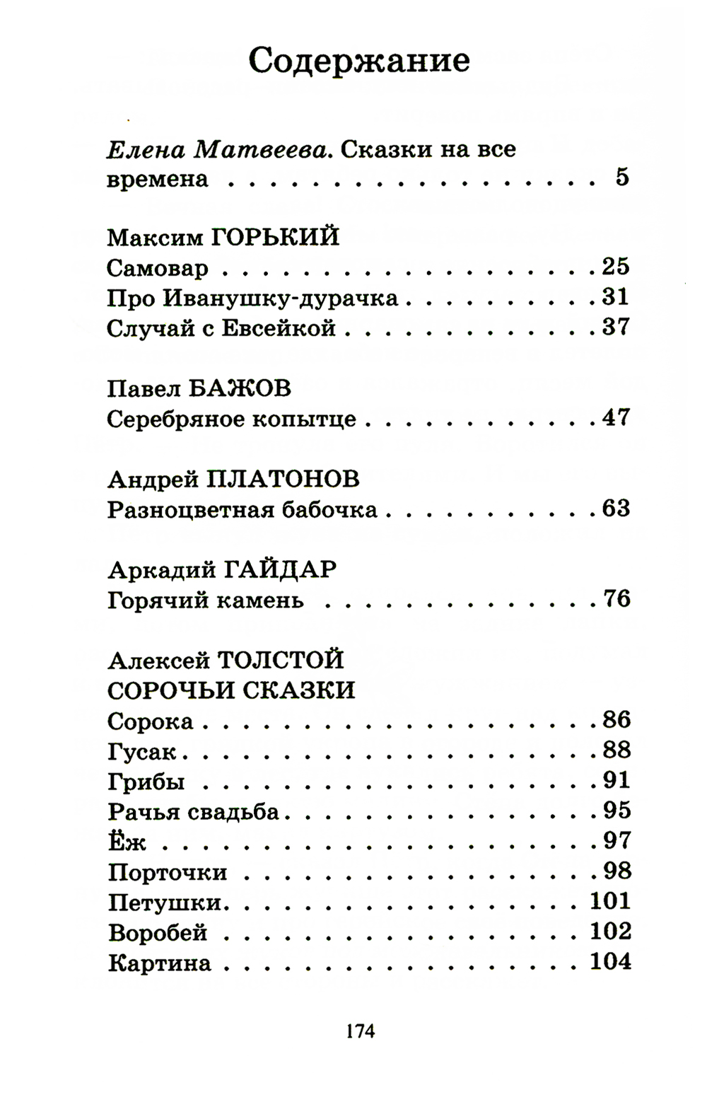 В сборник вошли литературные сказки русских писателей XX века: Максима Горького (1868-1936), Андрея Платонова (1899-1951), Аркадия Гайдара (1904-1941), Алексея Толстого (1883-1945), Константина Паустовского (1892-1968) и др. В них отразились не только народные ценности, но и эстетика времени, в которое они создавались, и мировоззрение авторов. Одни были созданы специально для детей, другие сначала предназначались для взрослых. Но каждая история содержит жизненный урок и заставляет читателя любого возраста задуматься над важными вопросами: о добре и зле, о правде и справедливости, о ценности семьи и ценности времени и о чудесах, которые открываются тем, кто не ждёт от них выгоды.