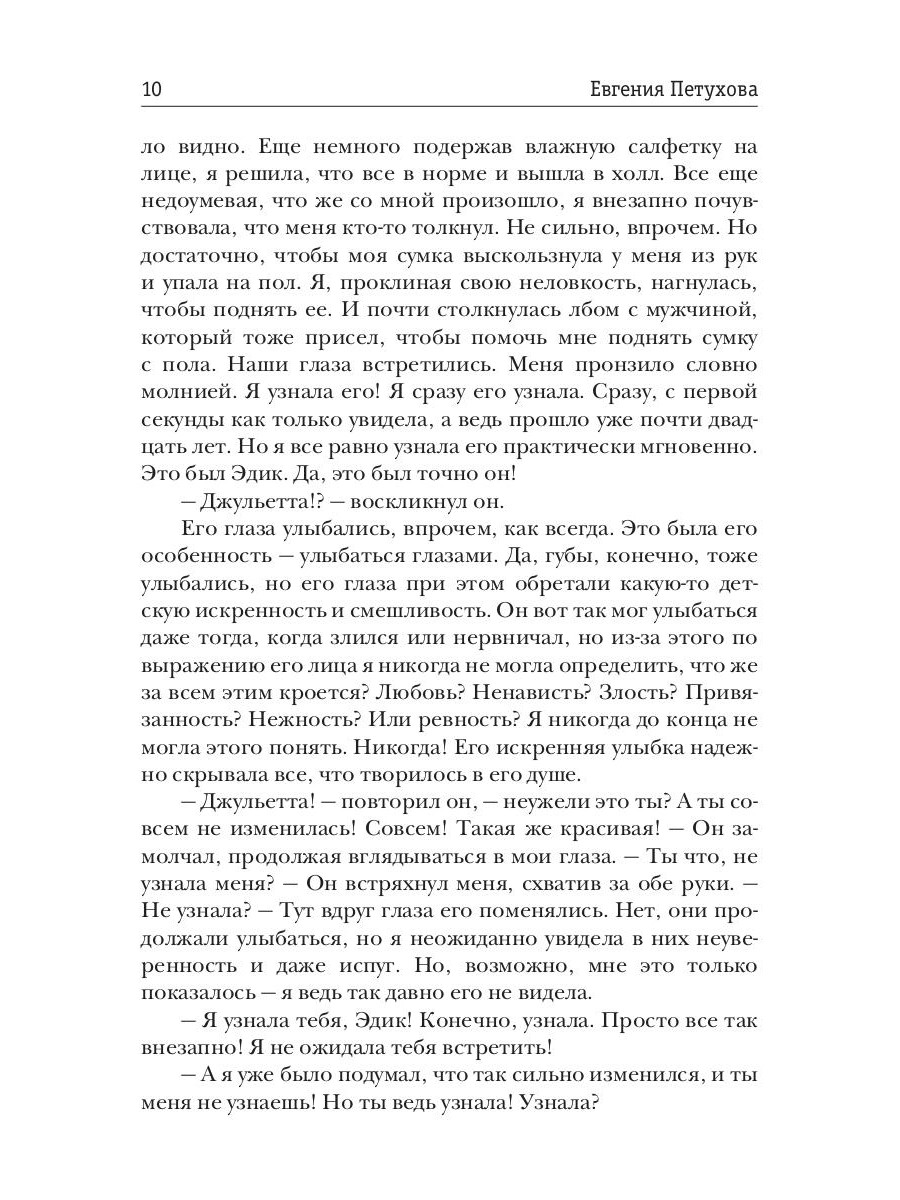 Перед вами - захватывающая и волнующая история любви. Любви с потерями, переживаниями, страстью и примирением. Эта любовь меняет и самих героев. Они решают очень важные для себя проблемы. Можно ли простить измену? Как пережить долгую разлуку? Как оправдать ложь? Как принять партнера таким, каков он есть? Как понять, истинное ли чувство? Все эти вопросы встают перед героями этого романа - Джульеттой и Эдиком. Этот роман о настоящей, истинной любви, которая не иссякает на протяжении многих лет. Герои проходят свой нелегкий путь приобретений и потерь. И однажды они рискнут написать новый сценарий своей любви, начать все с начала, все с чистого листа. Что из этого получится - читатель поймет, прочитав роман до конца, до последних страниц. Он узнает, каким трудным может оказаться этот путь к любви, как герои ради этого прекрасного чувства меняются сами и меняют реальность вокруг себя, как преодолевают препятствия и взрослеют в своих чувствах. Им все удается! Но за все приходиться заплатить! И за свое счастье тоже… Любящим и любимым посвящается!| Издательство | Т8 RUGRAM |