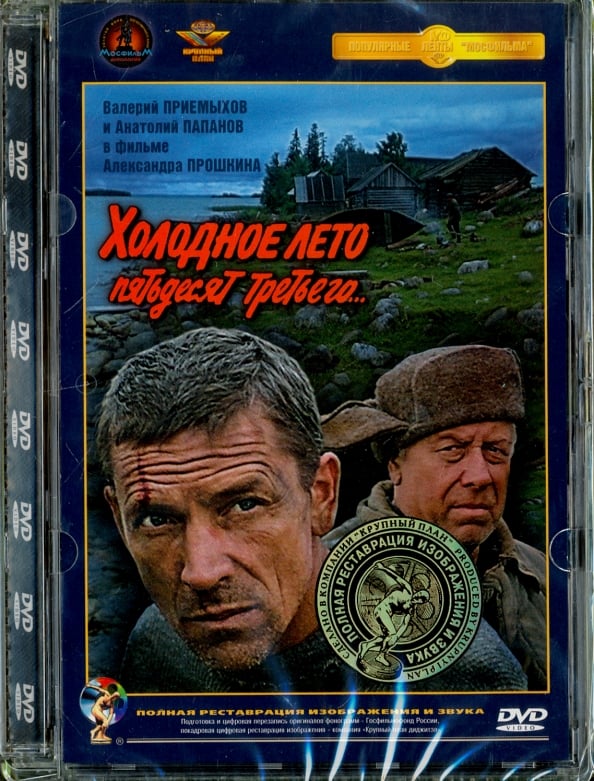 Двое бывших политзаключённых, недавно вышедших из лагеря, вступают в схватку с бандой амнистированных уголовников. Победу приходится оплатить дорогой ценой. Почти детективная история неравного поединка заканчивается и оптимистически, и трагически. Время действия - 1953 год, страна на пороге больших перемен. . . В этом фильме, удостоенном Государственной премии, сыграл свою последнюю кинематографическую роль замечательный артист Анатолий Папанов. Анатолий Папанов ("Уроки творчества", "Белорусский вокзал"), Нина Усатова ("Next"), Валерий Приемыхов ("Мама, не горюй", "Наш бронепоезд") в художественном фильме Александра Прошкина "Холодное лето пятьдесят третьего". Дополнительные материалы: - Полная реставрация изображения и звука - Фильмографии Режиссер: Александр Прошкин Актерский состав: Владимир Головин, Юрий Кузнецов, Анатолий Папанов, Борис Плотников, Владимир Кашпур, Виктор Степанов, Валерий Приемыхов, Виктор Косых, Нина Усатова, Зоя Буряк Жанр: драма. Производство: Мосфильм 1987 год, СССР Продолжительность: 97 мин. Звук: Русский Dolby Digital 5.1, Русский Dolby Digital 1.0 Mono Субтитры: русские. Форматы экрана PAL, Standart 4:3 (1,33:1) Цветной. Регион: All Полная реставрация изображения и звука. Для зрителей старше 12-ти лет.