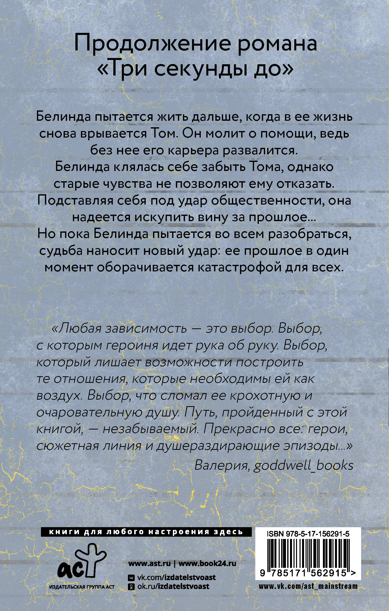 Белинда пытается строить жизнь без Тома, но однажды он снова, как ураган, врывается в нее. Без девушки его карьера на грани краха, и, хотя Белинда обещала себе не вмешиваться, старые чувства дают о себе знать. Ей нужно время, но, пока она пытается разобраться в себе, прошлое напоминает о себе, грозя разрушить новую жизнь.| Издательство | Издательство "АСТ" |