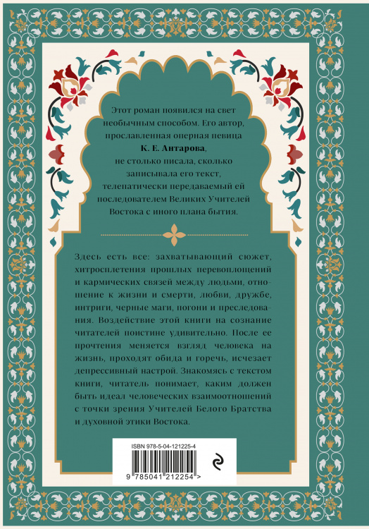 Новое подарочное оформление великого мистического романа. Погони и любовь, интриги и магия, хитросплетения судьбы и духовные знания Востока - эта книга, словно драгоценная шкатулка, наполнена чудесами и живительными источниками энергии. Роман появился на свет необычным способом. Его автор, прославленная оперная певица К.Е. Антарова, не столько писала, сколько записывала его текст, телепатически передаваемый ей последователем Великих Учителей Востока с иного плана бытия. Воздействие этой книги на сознание читателей поистине удивительно. После ее прочтения меняется взгляд человека на жизнь и людей, проходят обида и горечь, исчезает депрессивный настрой. Это книга реально помогает жить в нашем сложном мире, она врачует душу и возвышает сознание людей, потому что в ней изложены основы великого знания - древней мудрости Востока. Знакомясь с текстом книги, читатель понимает, каким должен быть идеал человеческих взаимоотношений с точки зрения Учителей Белого Братства и духовной этики Востока. Для кого Книга адресована самому широкому кругу читателей: любителям мистической прозы и приключений, поклонникам духовной мудрости Востока, а в особенности тем, кого интересуют практические вопросы самопознания и духовной самореализации. Об авторе Конкордия Евгеньевна Антарова (1886-1959) - выдающаяся оперная певица, последовательница философских учений духовных Учителей Востока, в частности, теософии и Агни-Йоги. Считается, что К.Е. Антарова не столько написала этот роман сама, сколько записала его благодаря духовному общению с одним из продвинутых последователей Махатм, находящимся на ином плане бытия.| Издательство | Эксмо |