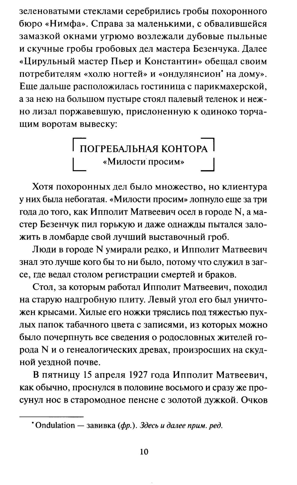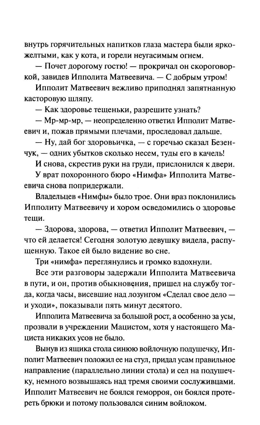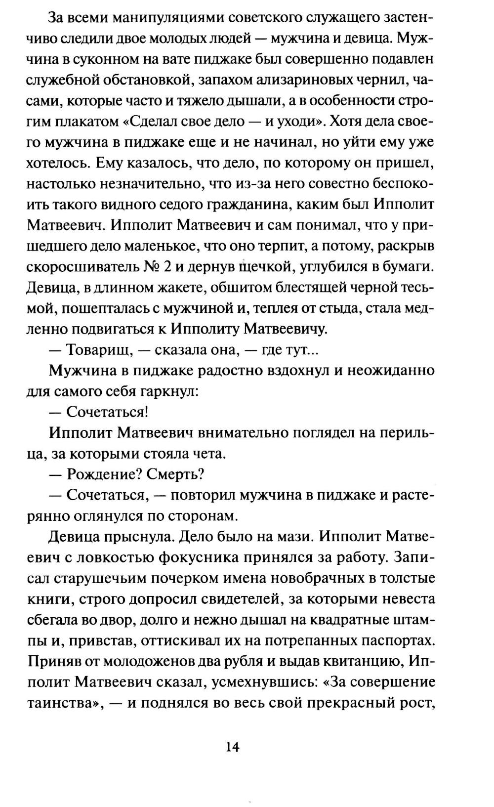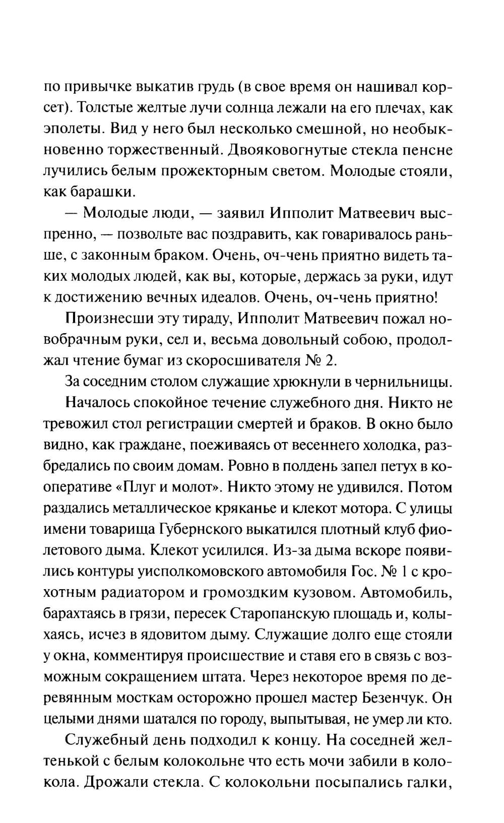 Аферист Остап Бендер и бывший дворянин Ипполит Воробьянинов отправляются на поиски бриллиантов, спрятанных в одном из двенадцати стульев. Их путь проходит через всю страну, а по дороге они встречают старых знакомых, мечтателей, трусов, романтиков. В этой охоте каждый новый шаг - приключение и испытание. Смогут ли герои достичь своей цели и какой ценой? Новую жизнь произведению дал одноименный фильм 1971 года, который многие с удовольствием пересматривают и сейчас.| Издательство | Манн, Иванов и Фербер |