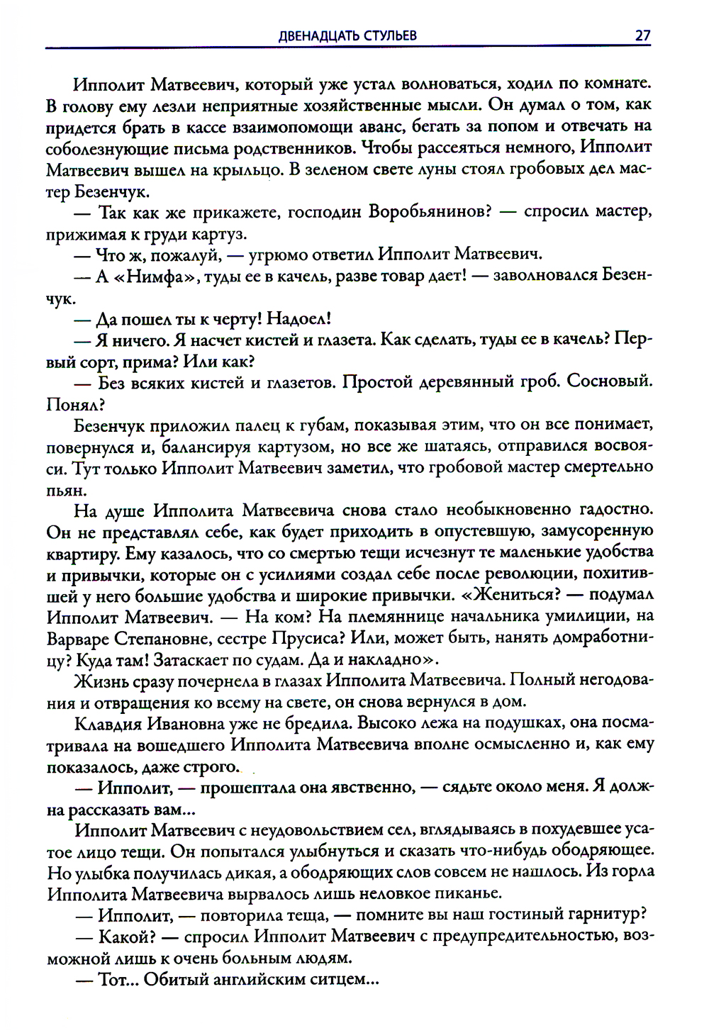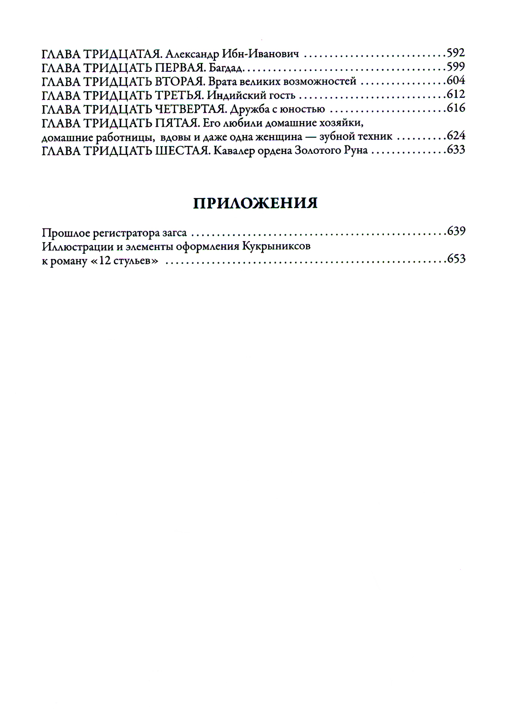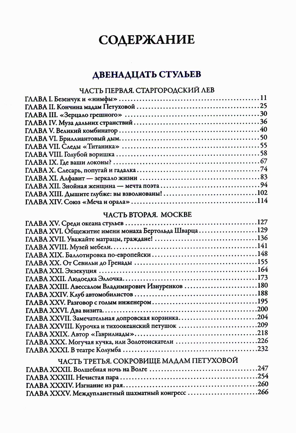 В советское время два знаменитых романа Ильи Арнольдовича Ильфа (1897-1937) и Евгения Петровича Петрова (1902-1942) «Двенадцать стульев» и «Золотой Теленок» неоднократно подвергались правкам, изменениям и сокращениям. В данном издании полные тексты этих романов воспроизводятся по их первым книжным публикациям. В конце издания опубликован рассказ «Прошлое регистратора ЗАГСа», который является неизданной главой из романа «Двенадцать стульев»; впервые он был опубликован в журнале «30 дней» в 1929 году. Книгу украшают иллюстрации Кукрыниксов; приводится также более трех десятков их дополнительных иллюстраций и элементов оформления к первым изданиям «Двенадцати стульев».| Издательство | СЗКЭО |
