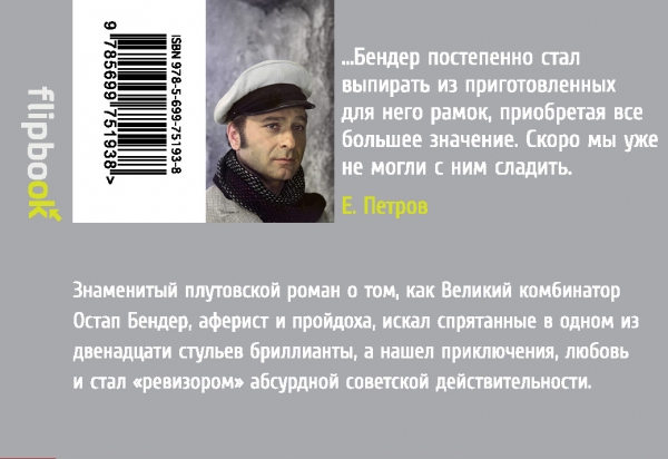 Знаменитый плутовской роман о том, как великий комбинатор Остап Бендер, аферист и пройдоха, искал спрятанные в одном из двенадцати стульев бриллианты, а нашел приключения, любовь и стал «ревизором» абсурдной советской действительности.| Автор/составитель | Ильф И.А. |