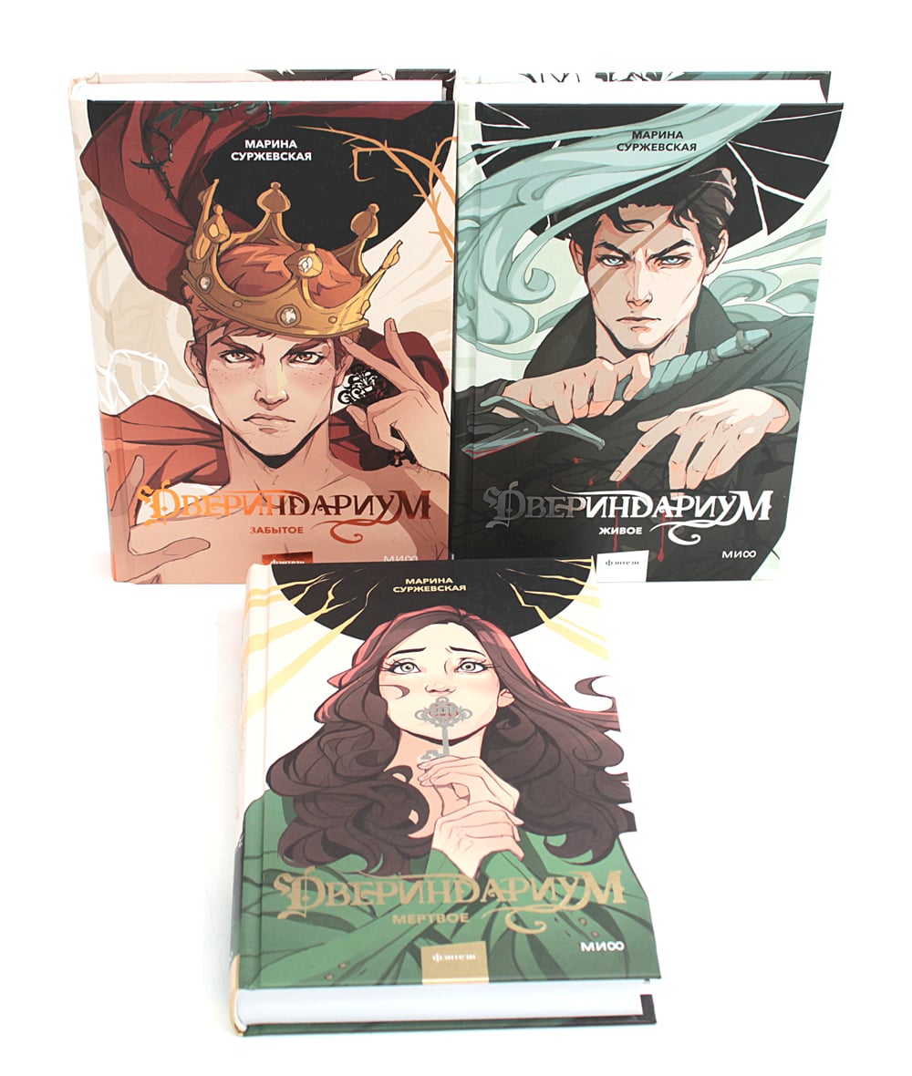 Комплект состоит из трилогии «Двериндариум» Марины Суржевской. В первой книге «Мертвое» все, о чем мечтает сирота Вивьен, - найти пропавшего лучшего друга. Когда на ее пороге оказывается девушка, точь-в-точь похожая на нее, и предлагает поменяться местами во время годового обучения на магическом острове Двериндариум, Вивьен не задает лишних вопросов. Ведь, возможно, обладатели Дара Двери сдвинут ее поиски с мертвой точки. Однако, приближаясь к острову, Вивьен все четче понимает, что у незнакомки были свои причины избегать появления здесь. А кара для тех, кто пытается выдать себя за другого, чтобы попасть на остров, - смерть. Во второй книге «Живое» Иви открыла заветную Дверь - совершила то, о чем большинство людей может только мечтать. Однако мир с другой стороны оказался полон жутких чудовищ и скуп на Дары. Или так только кажется? Перешагнув порог обратно, она понимает, что чары, делавшие ее похожей на Ардену, развеялись. Находиться по эту сторону Двери теперь куда опаснее, а древние тайны, которые хранит Двериндариум, стремительно всплывают на поверхность. В третьей книге «Забытое» Вивьен больше не нужно притворяться - теперь все знают, кто она на самом деле. Обманщица. Предательница. Освободительница Чудовищ. Иногда правда делает жизнь еще сложнее: теперь друзья не спешат к ней на помощь, а враги беспрепятственно набирают мощь. Сможет ли Иви все исправить, когда сам Двериндариум - оплот надежности и постоянства - пугающе меняется, обнажая свои самые древние секреты?| Издательство | Манн, Иванов и Фербер |